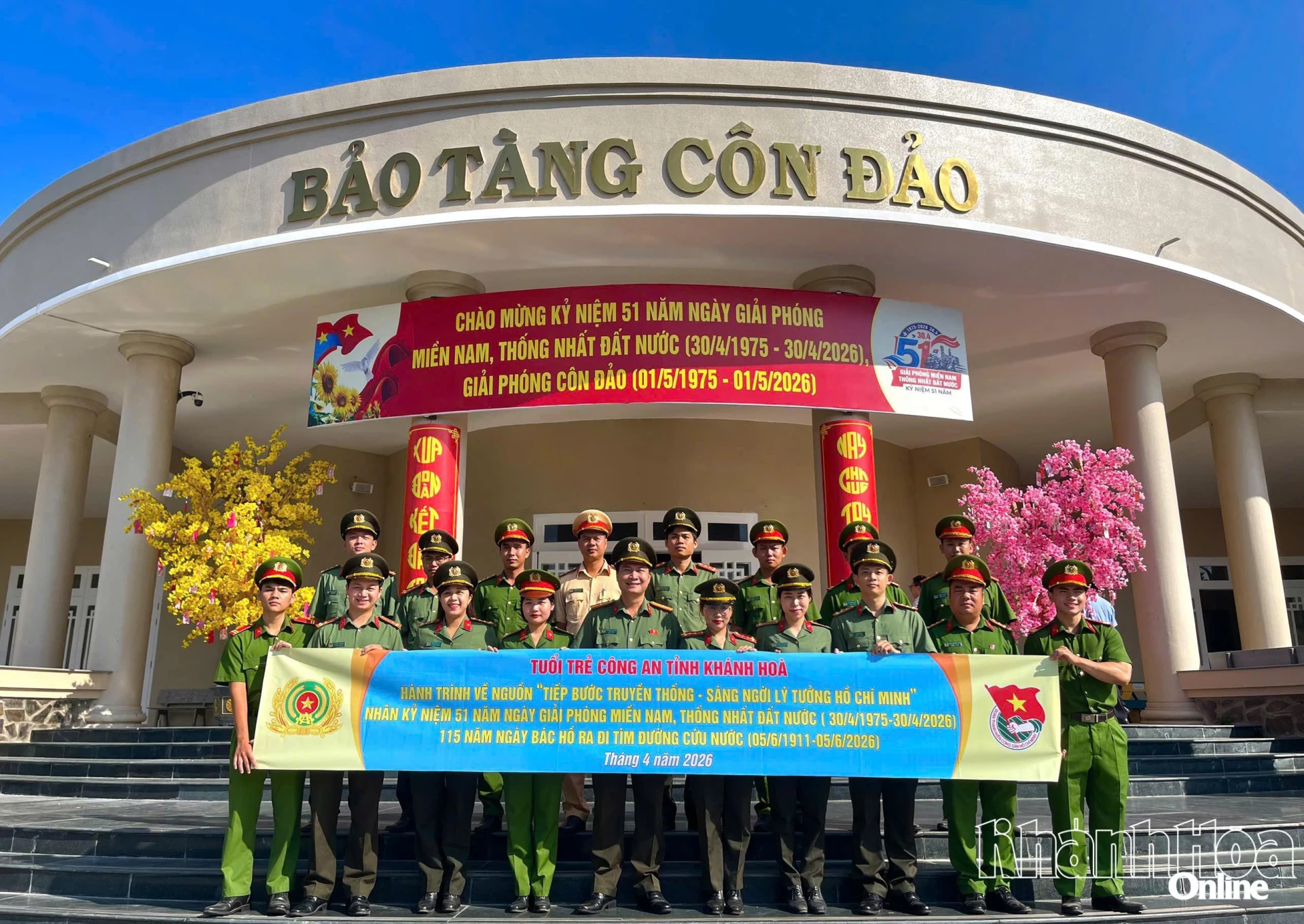 Kỷ niệm 51 năm Ngày Giải phóng hoàn toàn miền Nam, thống nhất đất nước (30-4-1975 - 30-4-2026) và 115 năm Ngày Bác Hồ ra đi tìm đường cứu nước (5-6-1911 - 5-6-2026), từ ngày 14 đến 17-4, Đoàn Thanh niên Công an tỉnh Khánh Hòa tổ chức chuỗi hoạt động sinh hoạt chính trị và hành trình về nguồn ý nghĩa với chủ đề “Tiếp bước truyền thống - Sáng ngời lý tưởng Hồ Chí Minh”. Đoàn công tác do Thiếu tá Nguyễn Duy Hưng - Trưởng Ban Thanh niên Công an tỉnh làm trưởng đoàn, cùng các đoàn viên, thanh niên (ĐVTN) tiêu biểu đại diện các cơ sở đoàn trong lực lượng Công an tỉnh.