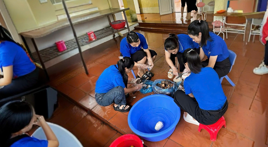 Toàn bộ kinh phí, thực phẩm được huy động từ nguồn xã hội hóa và đóng góp của đoàn viên thanh niên, cán bộ, công chức phường. Các đoàn viên chia nhau phụ trách từng khâu từ sơ chế, nấu nướng đến chia suất và phục vụ tại chỗ, góp phần giúp người dân vùng lũ ổn định tạm thời sinh hoạt, có thêm động lực vượt qua khó khăn.