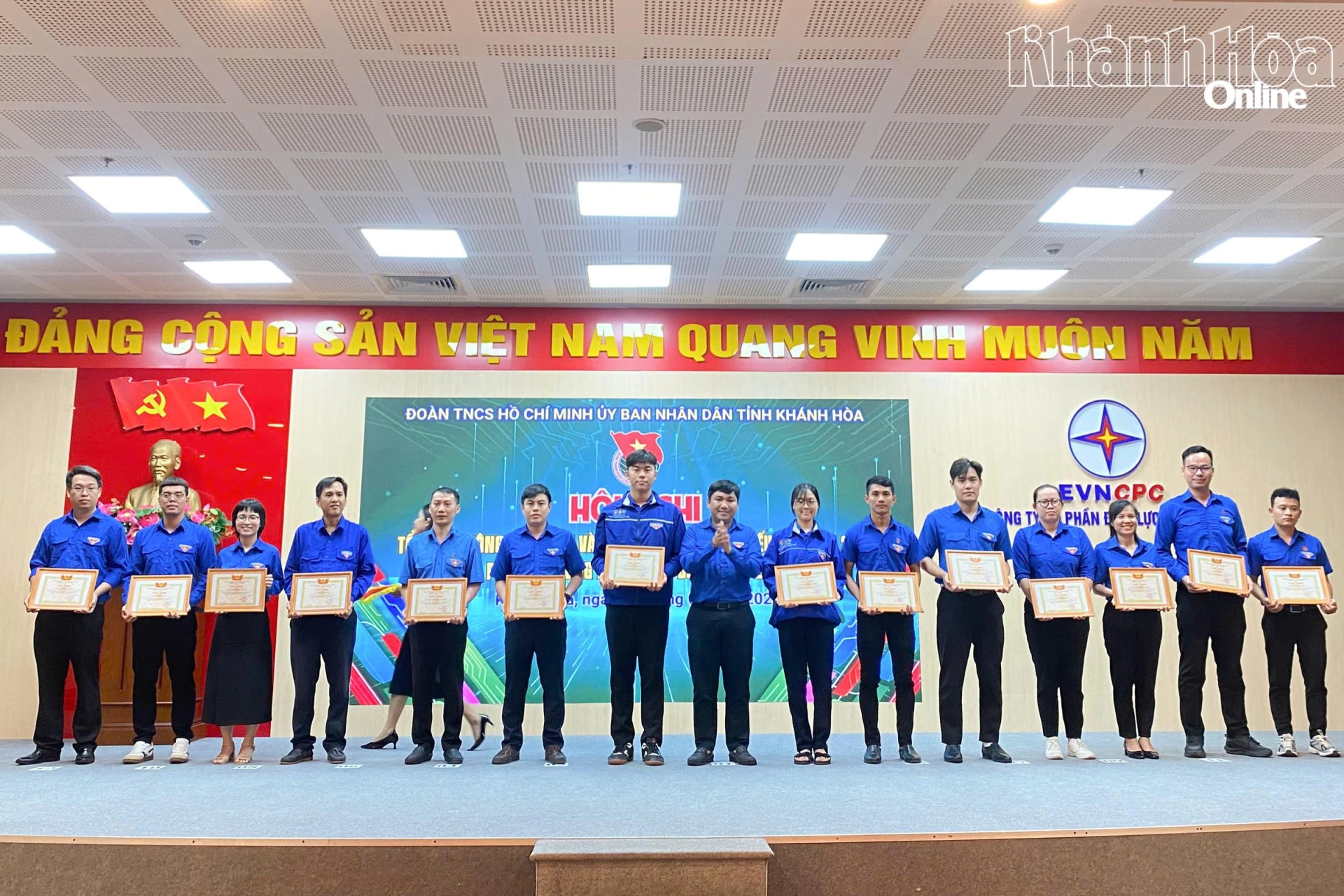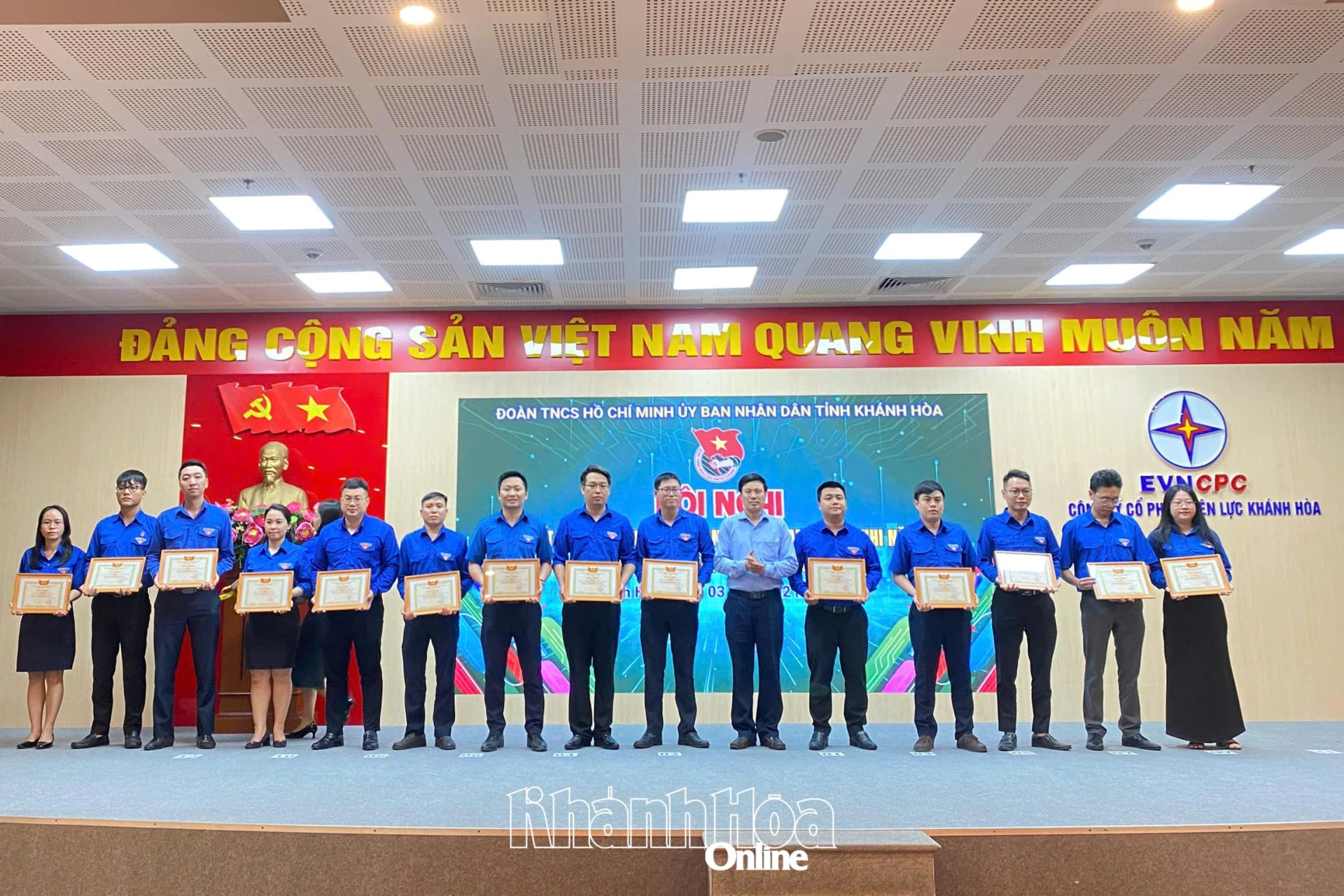 Các đại biểu trao giấy khen của Đoàn Thanh niên UBND tỉnh cho 10 tập thể hoàn thành xuất sắc nhiệm vụ.