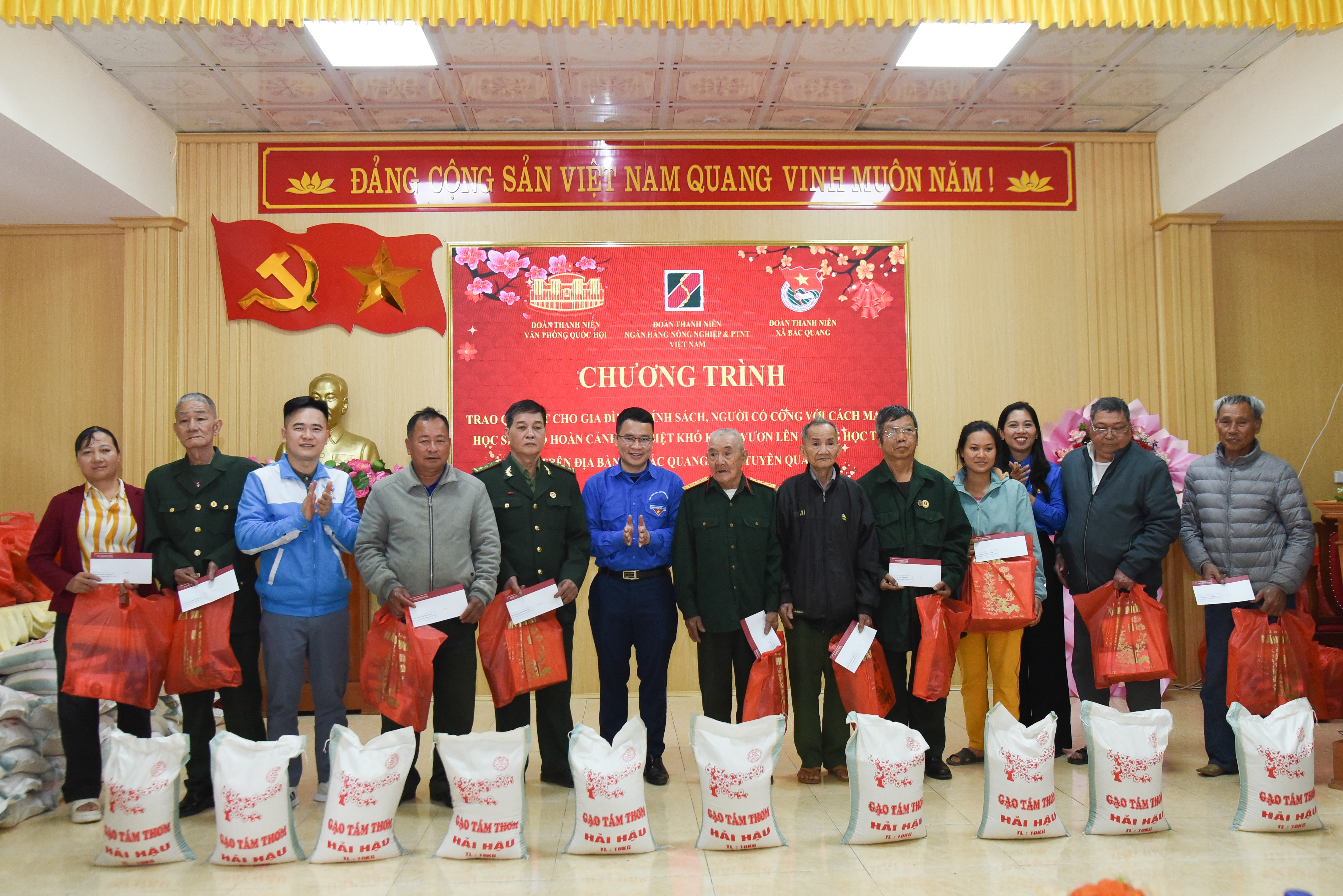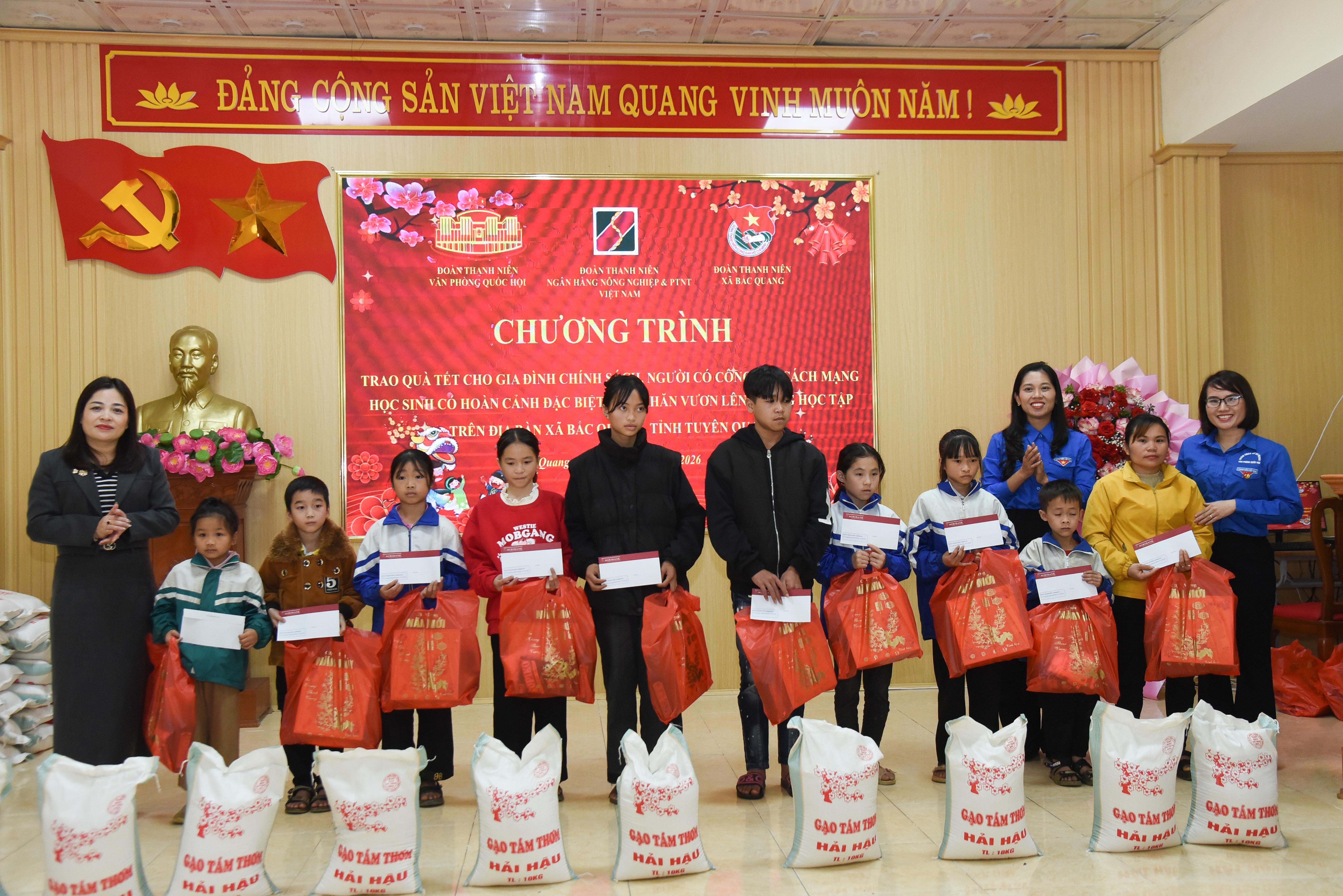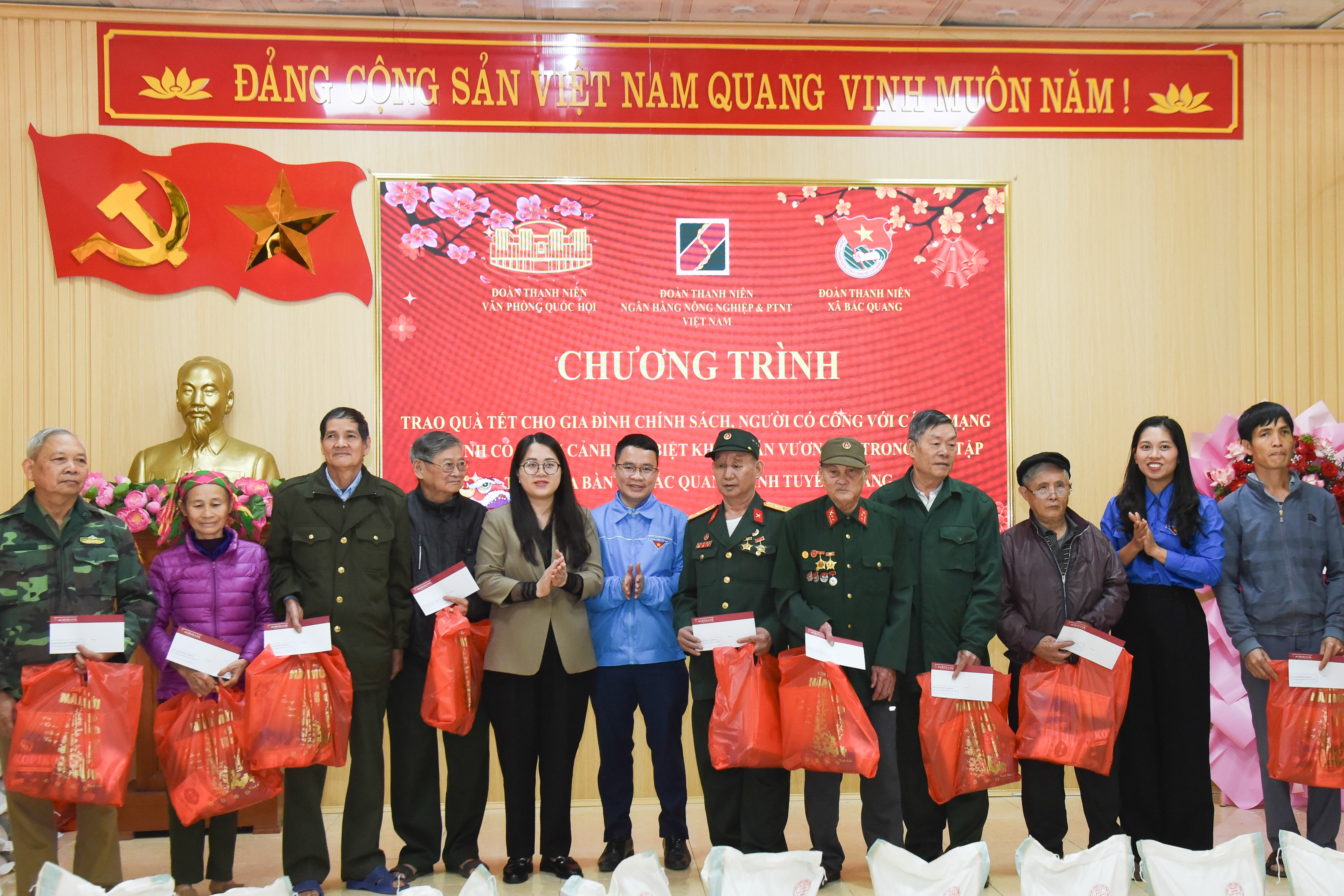 Tại chương trình, Đoàn đã trao tặng 66 suất quà Tết cho gia đình chính sách, người có công với cách mạng và học sinh, thiếu nhi có hoàn cảnh đặc biệt khó khăn vươn lên trong học tập trên địa bàn xã Bắc Quang, tỉnh Tuyên Quang.