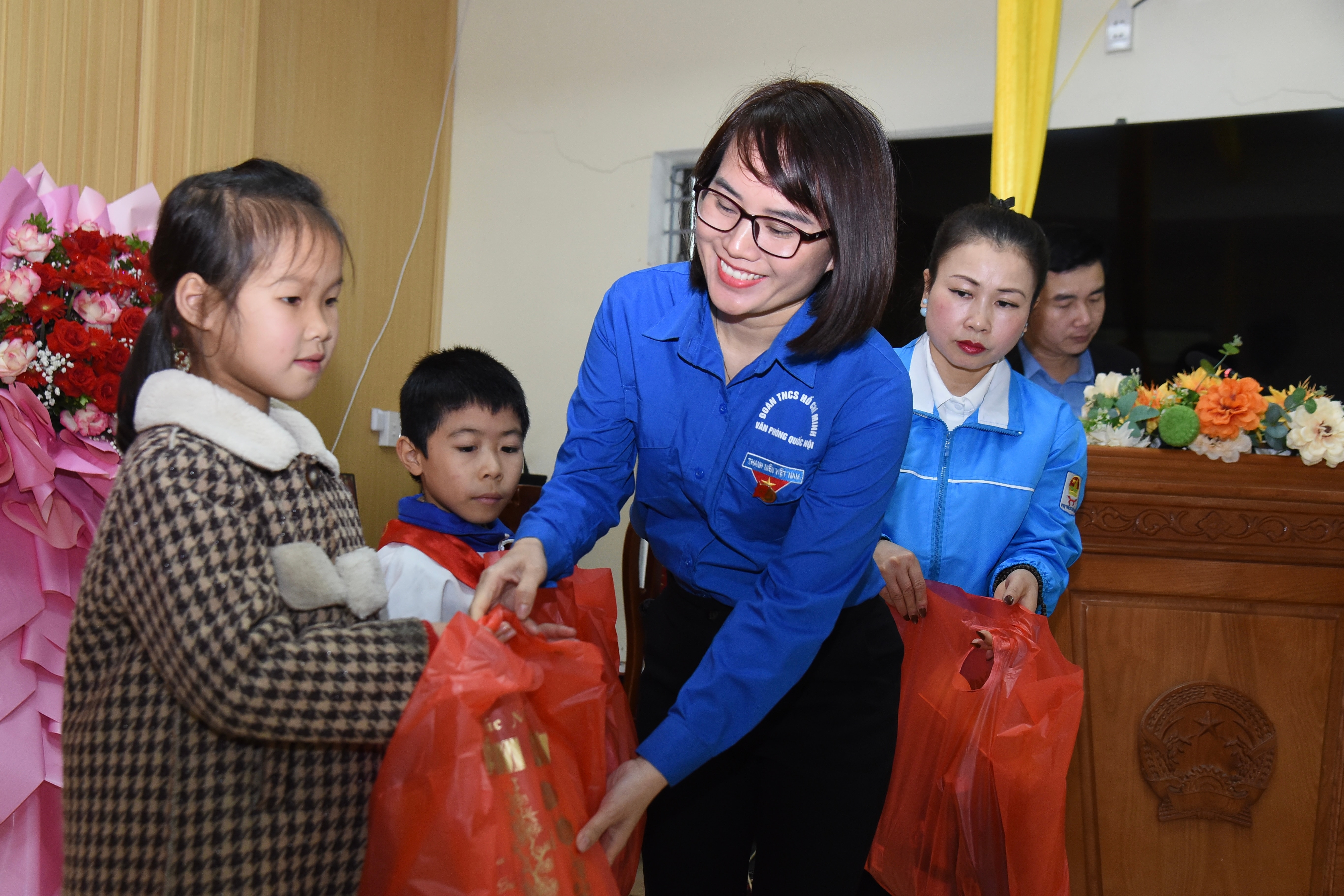 Phó Bí thư Đoàn Thanh niên Văn phòng Quốc hội Đặng Thị Mai trao tặng quà Tết cho gia đình chính sách, người có công với cách mạng và học sinh, thiếu nhi có hoàn cảnh đặc biệt khó khăn