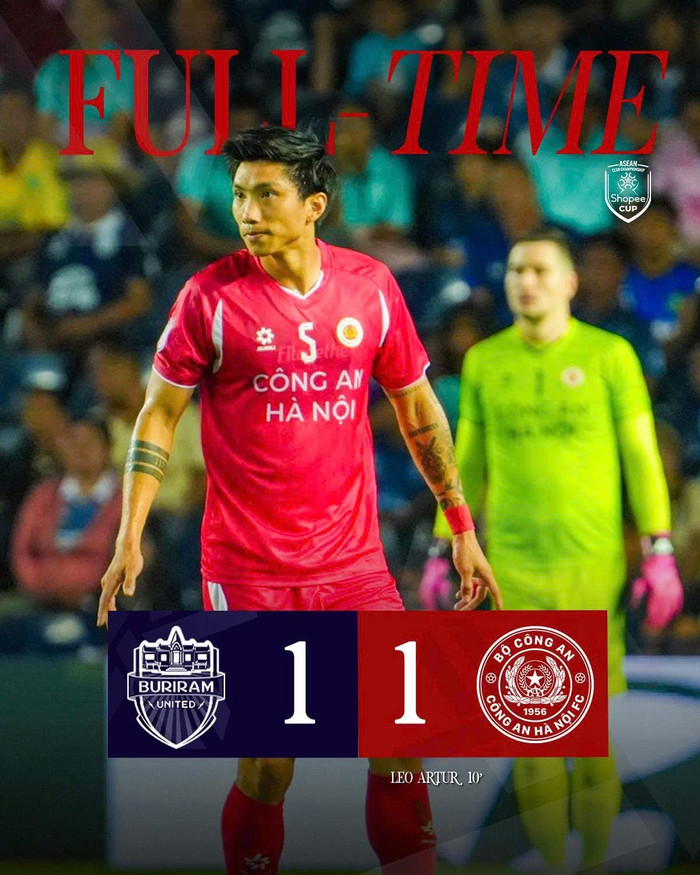 Buriram United dù chỉ còn 10 người trên sân vẫn kịp gỡ hòa CAHN 1-1 ở trận đấu thuộc giải các CLB Đông Nam Á. Nhà vô địch Thai League có 3 điểm sau 3 trận hòa, trong khi CAHN có 4 điểm, tạm xếp thứ 4.