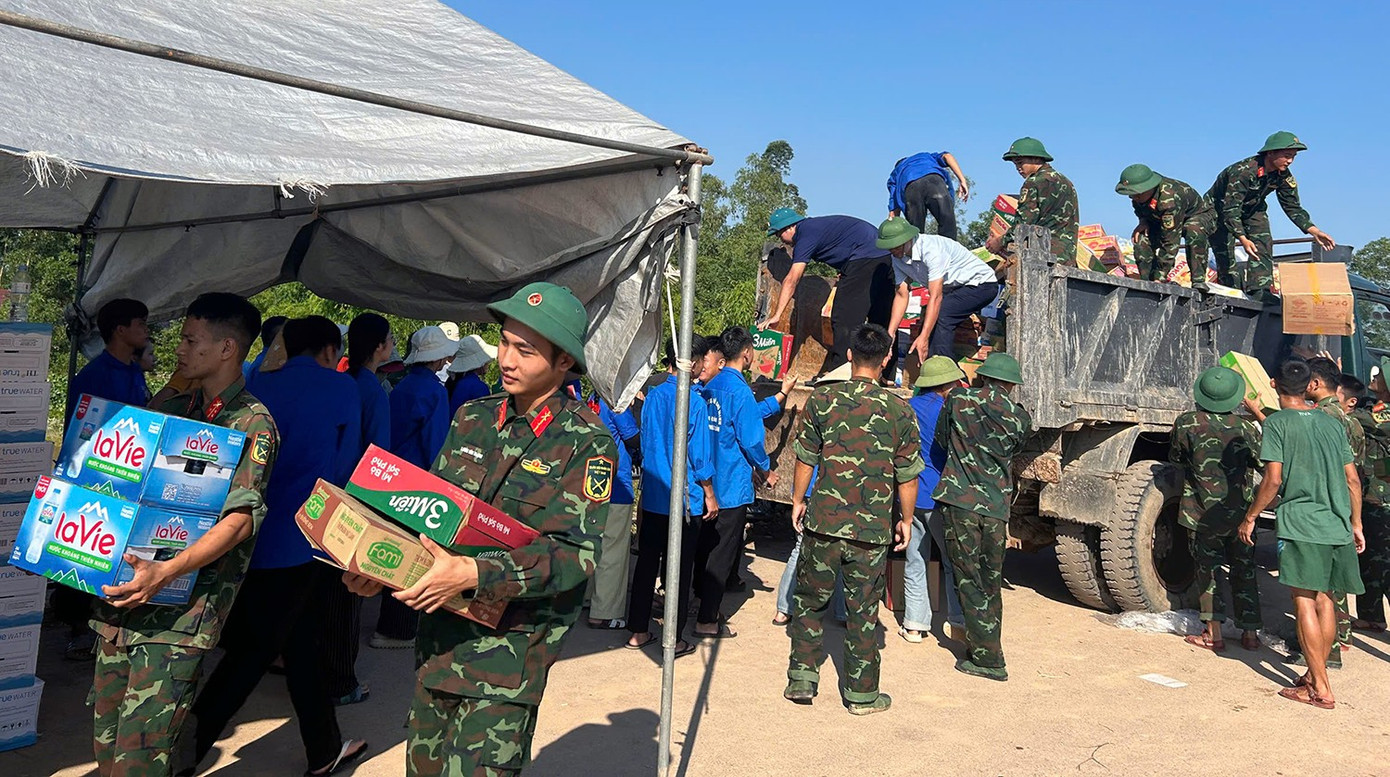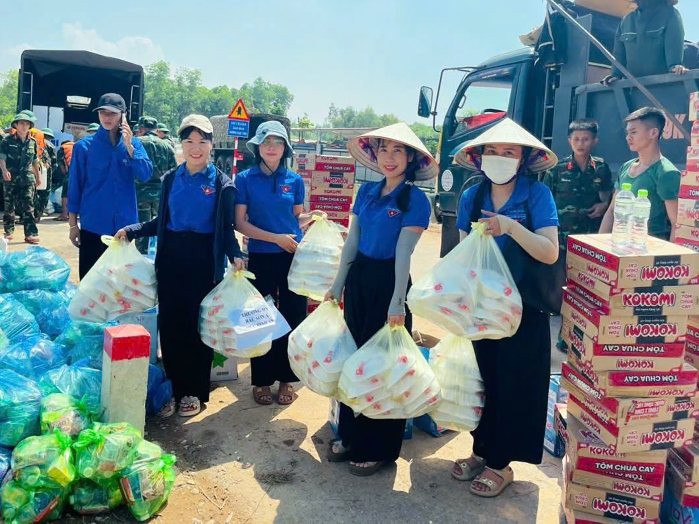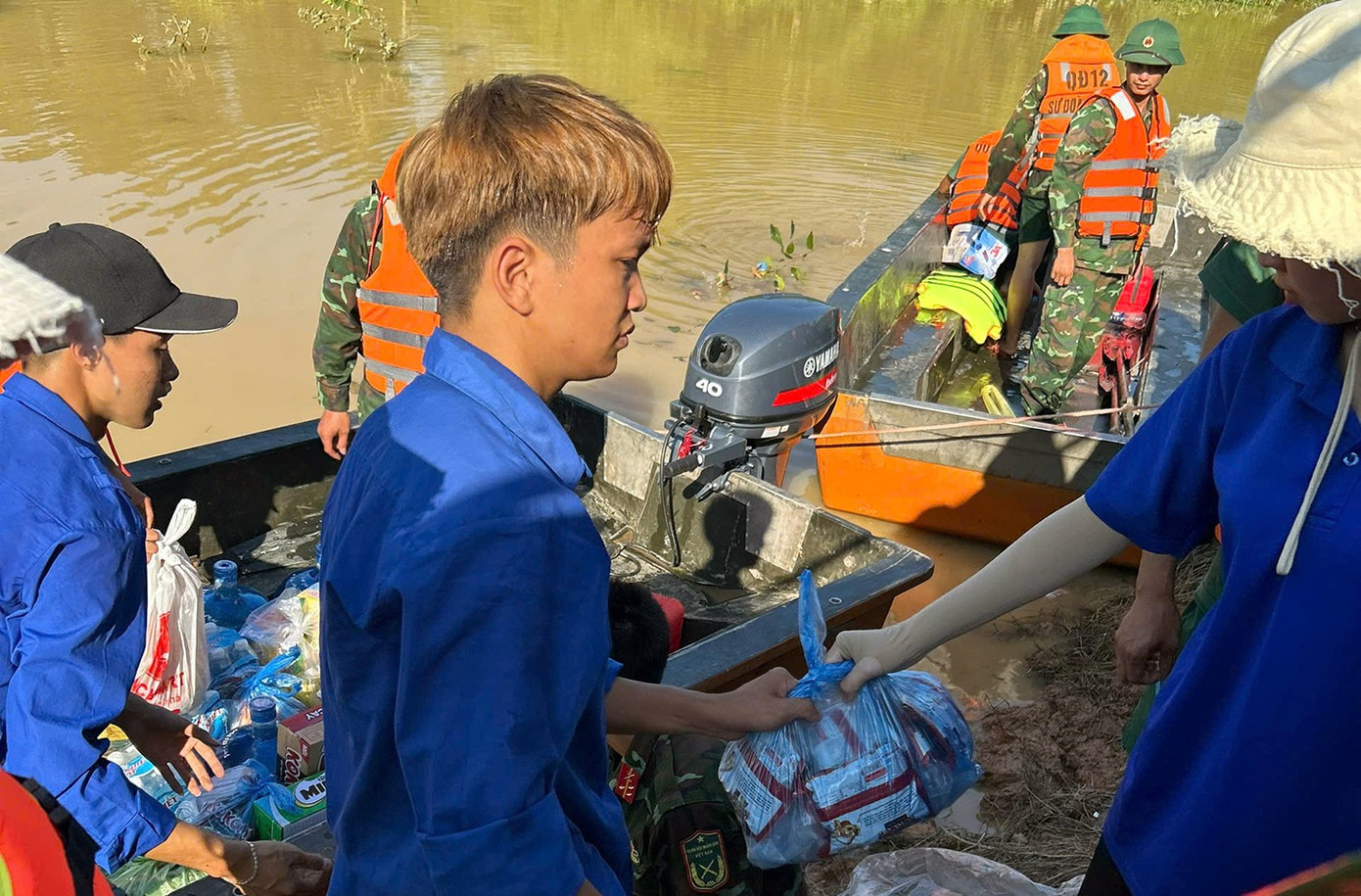 Ở thôn Đô Tân – nơi nước ngập sâu tới 3 - 4m, đoàn viên thanh niên phối hợp cùng đội cứu hộ 116 điều khiển 5 thuyền liên tục vào khu vực bị cô lập, chuyển 50 thùng nước sạch và hơn 2.000 suất nhu yếu phẩm.