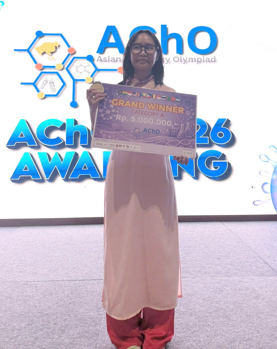 Quán quân AChO Quốc tế 2026 (cấp độ A) thuộc về Ngô Thùy Dương, học sinh Trường THPT Chuyên Hà Nội – Amsterdam. Đây là kết quả nổi bật, ghi dấu ấn mạnh mẽ của học sinh Việt Nam trên đấu trường học thuật quốc tế uy tín về Hóa học; đồng thời tiếp tục khẳng định năng lực học thuật và khả năng hội nhập quốc tế của học sinh Việt Nam trong lĩnh vực khoa học tự nhiên.