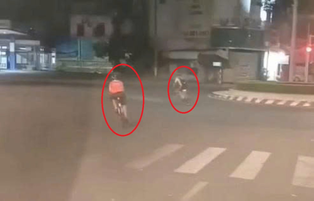 Theo clip được chia sẻ trên mạng xã hội, vào hơn 5h cùng ngày, trong khi các phương tiện đang dừng chờ đèn đỏ, một nhóm người điều khiển xe đạp từ phía sau chạy tới.