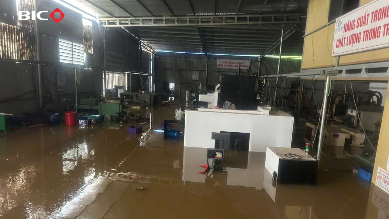 Một nhà máy bị thiệt hại tài sản máy móc do bão lũ