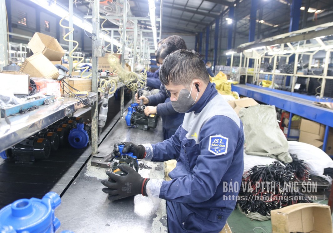 Công nhân Công ty TNHH Bảo Long sản xuất máy bơm