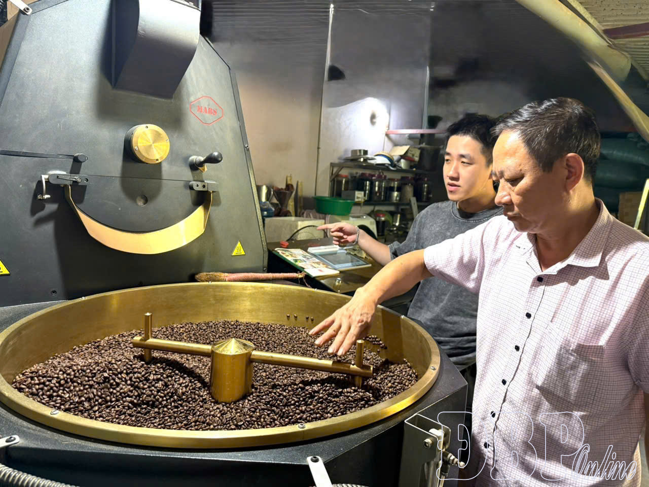 Cơ sở chế biến cà phê Hà Chung đầu tư thiết bị hiện đại sản xuất cà phê.