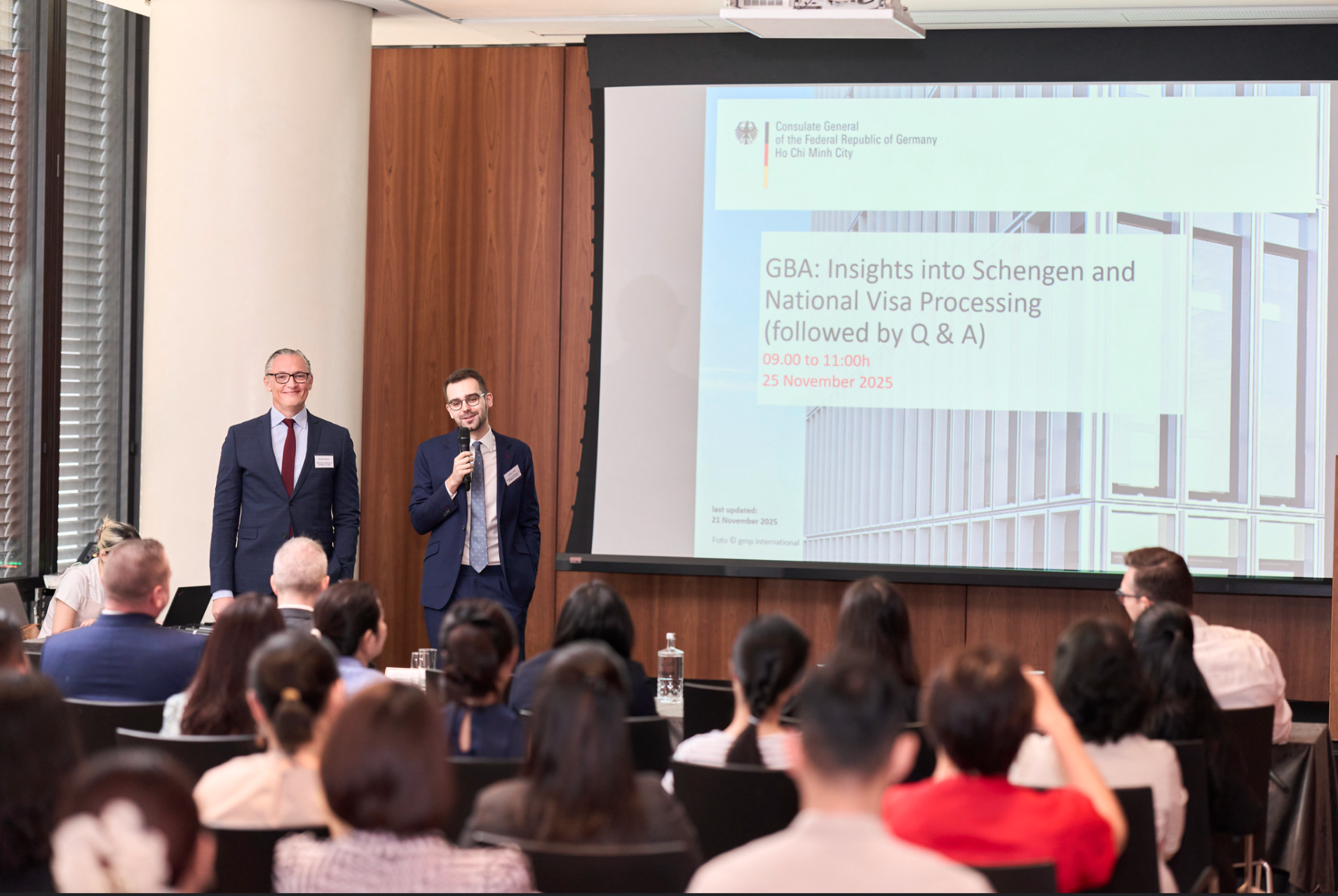 Một hội thảo do GBA phối hợp Tổng Lãnh sự quán Đức tại Thành phố Hồ Chí Minh tổ chức vào tháng 11/2025, thu hút đông đảo doanh nghiệp hai nước tham gia. Ảnh do GBA cung cấp