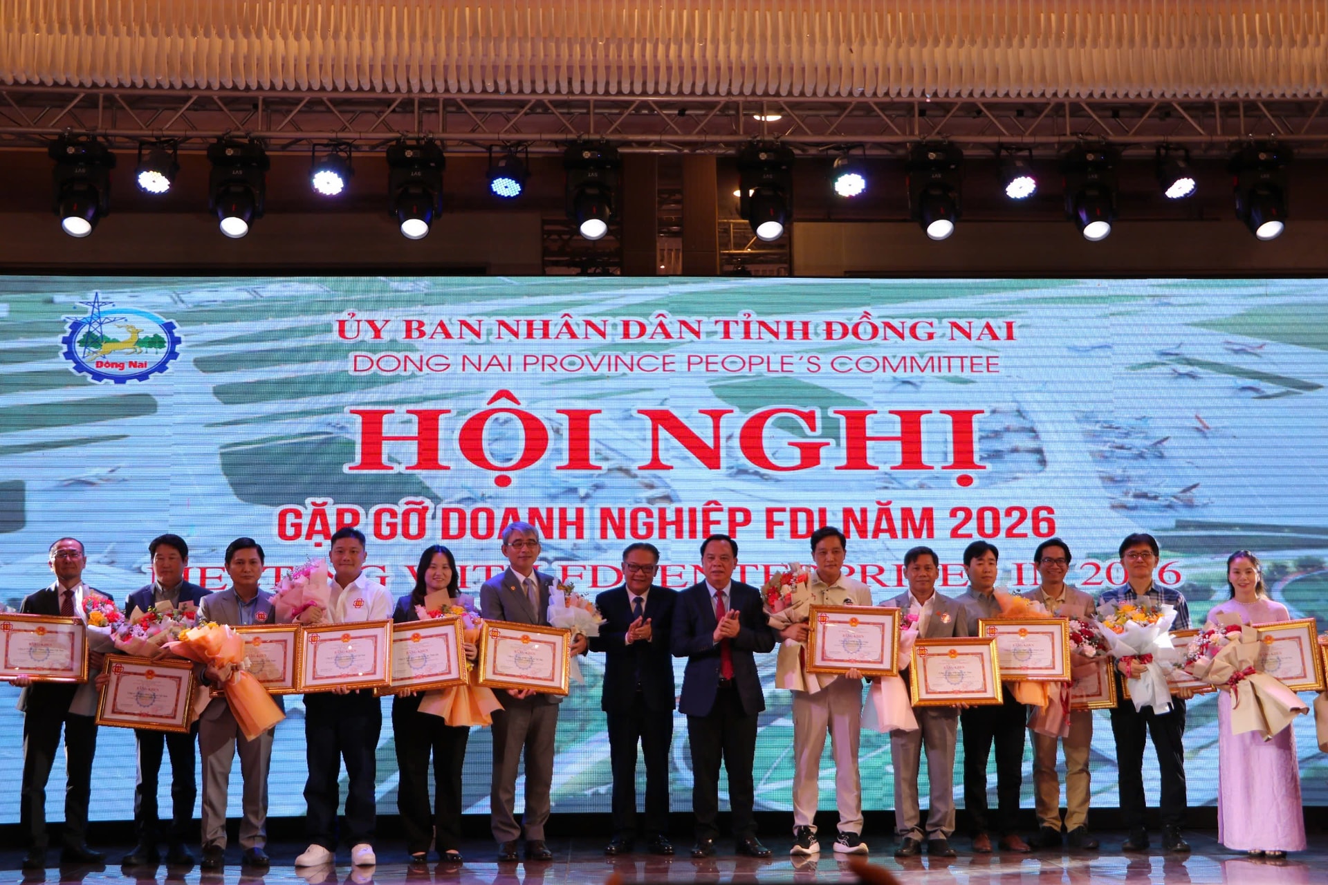 Theo báo cáo tại hội nghị, tỉnh Đồng Nai thu hút đầu tư FDI từ 51 quốc gia và vùng lãnh thổ, với 2.255 dự án, tổng vốn đầu tư trên 43 tỷ USD. Trong năm 2025, Đồng Nai thu hút vốn đầu tư trong nước hơn 174.000 tỷ đồng, nước ngoài hơn 3,3 tỷ USD với 198 dự án cấp mới và tổng vốn đăng ký 1,7 tỷ USD. Dịp này, UBND tỉnh Đồng Nai cũng trao giấy chứng nhận đăng ký đầu tư cho 3 dự án FDI, trong đó có 2 dự án mới và 1 dự án tăng vốn với tổng vốn đăng ký đầu tư gần 550 triệu USD.