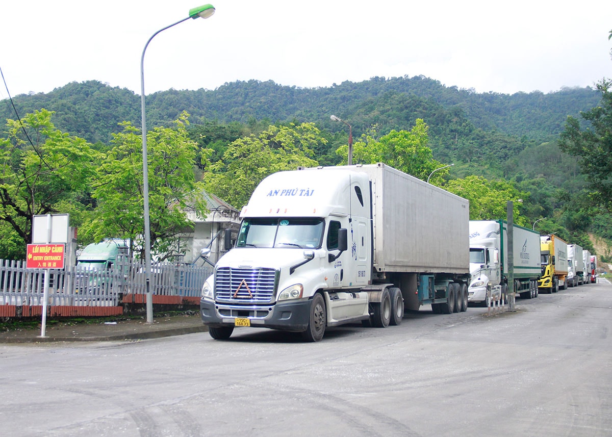 Xe container tập kết tại cửa khẩu quốc tế Thanh Thủy, Tuyên Quang. Ảnh: Biện Luân