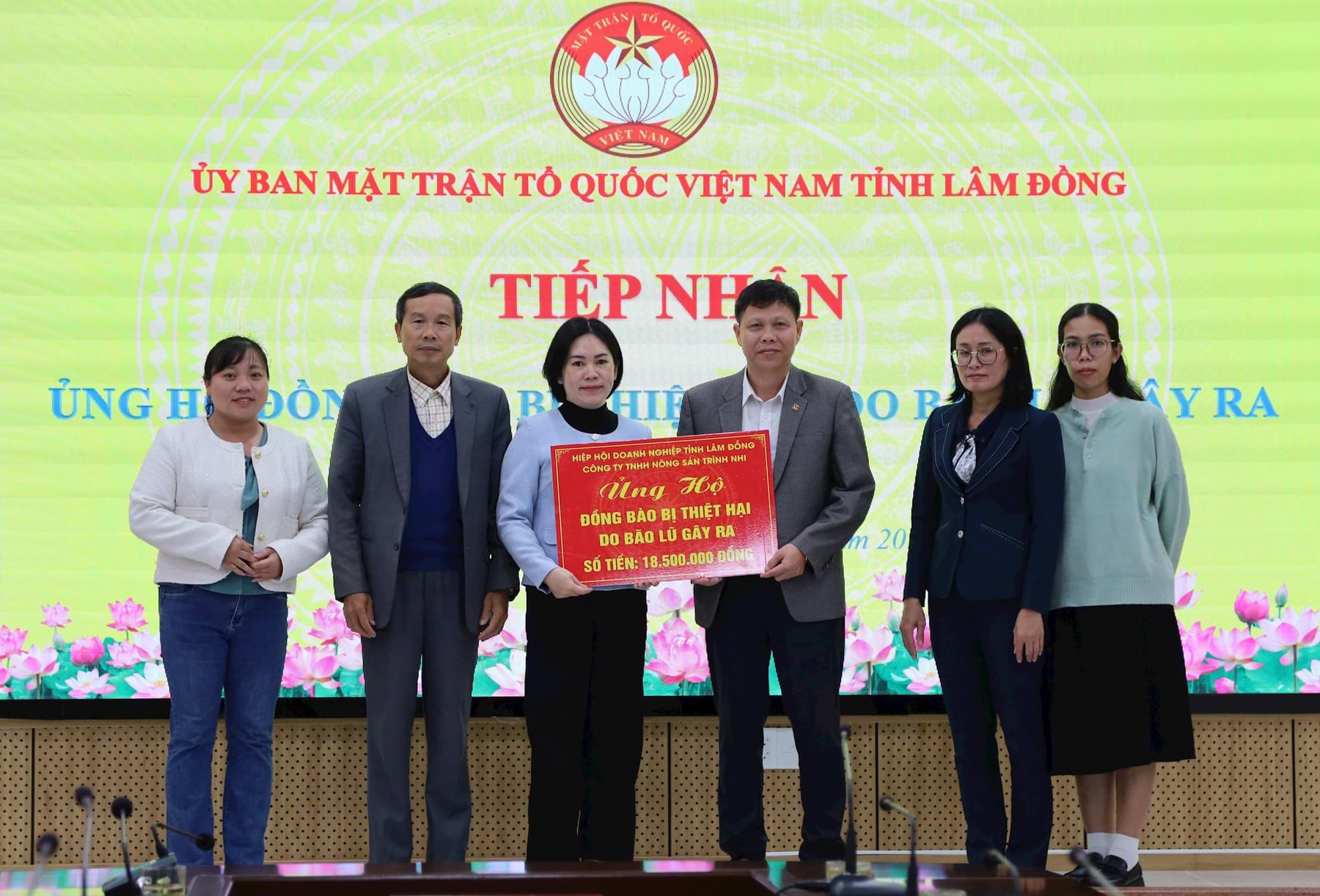 Tại buổi tiếp nhận, Hiệp hội Doanh nghiệp tỉnh Lâm Đồng đã trao tặng số tiền 18,5 triệu đồng để chia sẻ khó khăn với các địa phương, người dân chịu ảnh hưởng nặng nề bởi bão lũ gây ra.