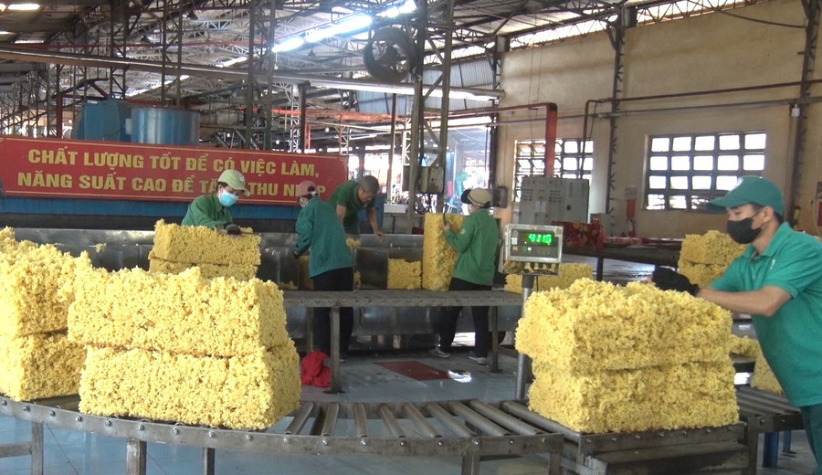 Chế biến mủ cao su tại Công ty TNHH một thành viên Cao su Chư Păh. Ảnh: Hà Đức Thành