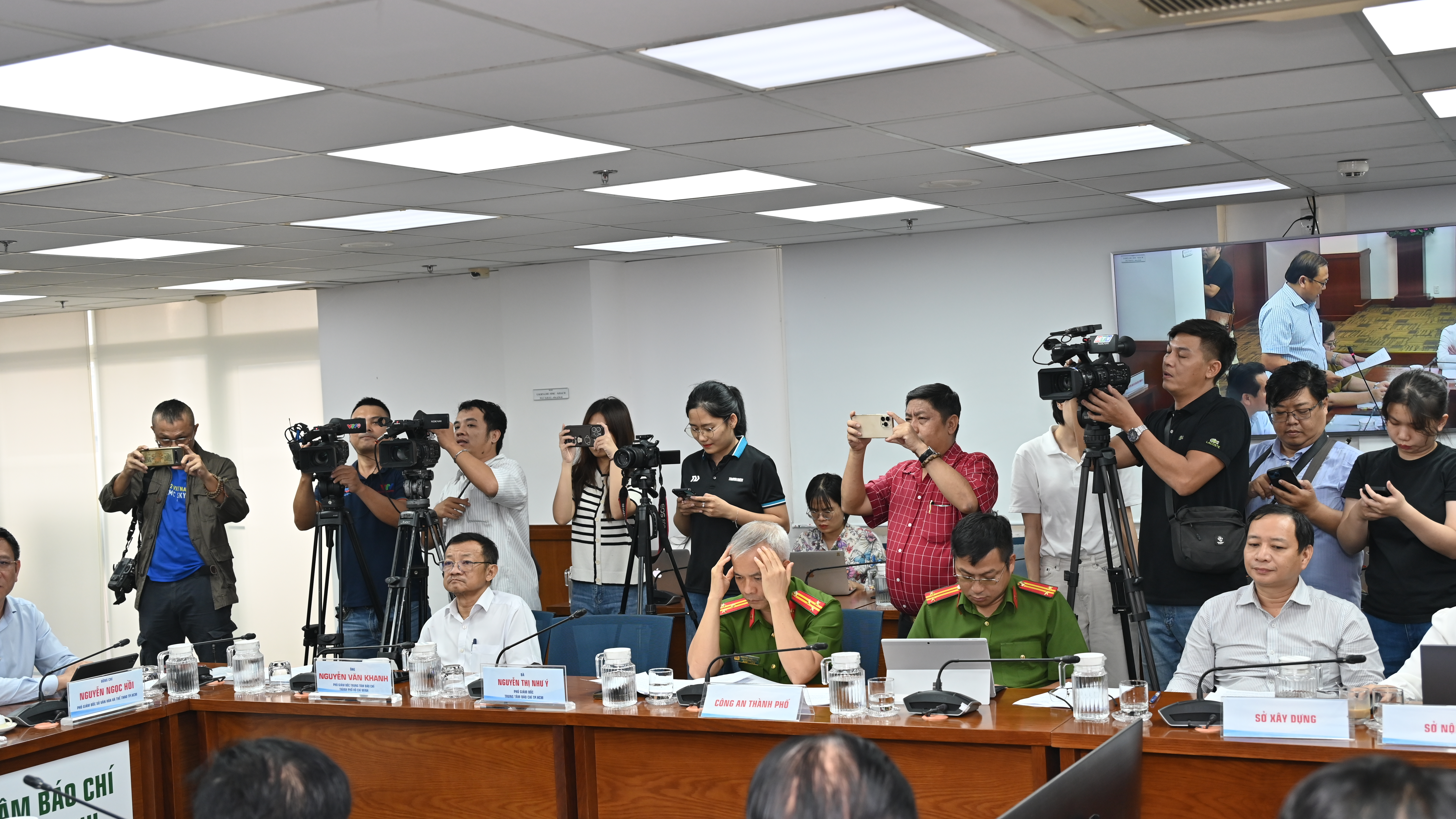 Đại diện các cơ quan thông tấn, báo chí tham dự họp báo