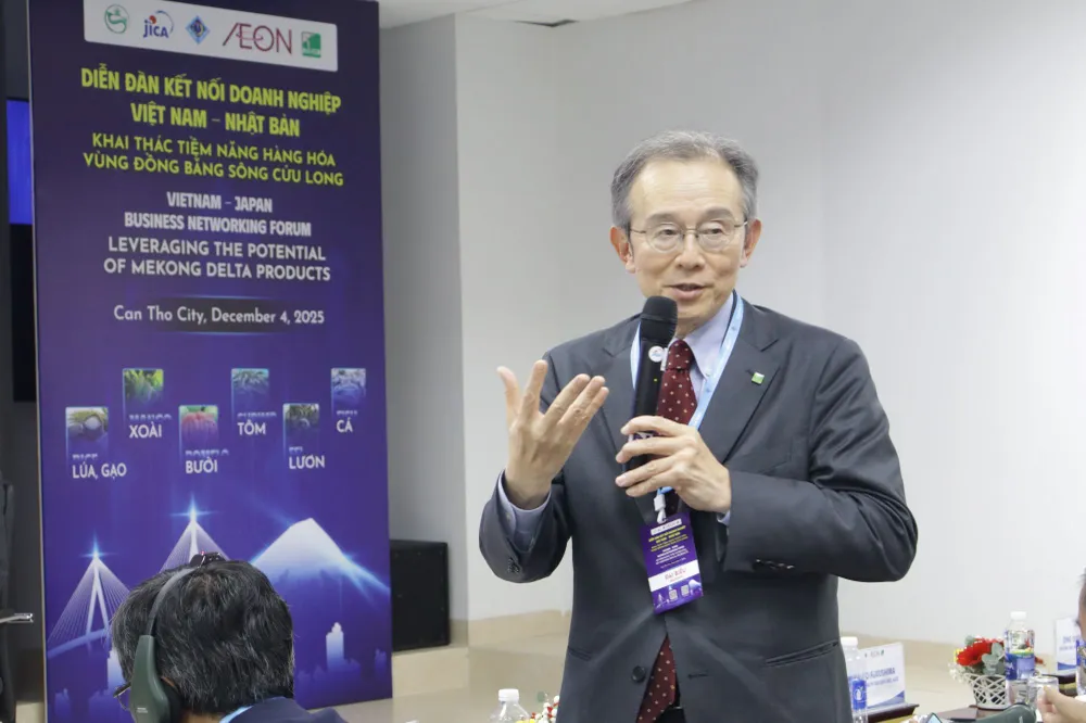 Trong đó, ông Toshinao Tanaka, Chủ tịch Công ty Thực phẩm Takesho đã chia sẻ về ý tưởng hình thành thung lũng thực phẩm tại ĐBSCL và dùng công nghệ để nâng cao giá trị thực phẩm của ĐBSCL.
