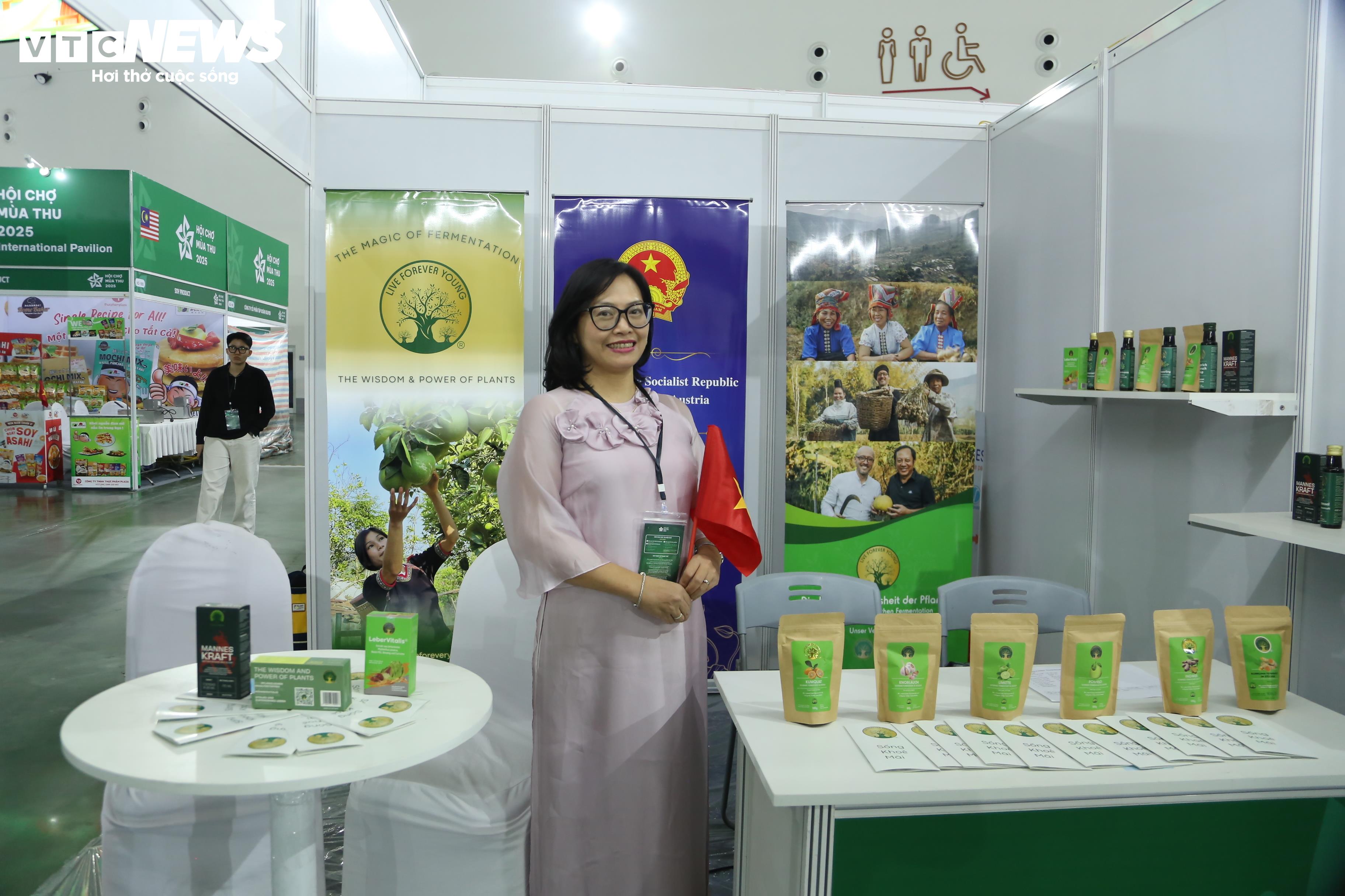 Trong khi đó, theo tiết lộ của bà Đinh Thị Hoàng Yến - Tham tán Thương mại, Trưởng Thương vụ Việt Nam tại Áo - gian hàng của Áo trưng bày các sản phẩm của Công ty Live Forever Young, doanh nghiệp chuyên sản xuất các sản phẩm dược phẩm thảo dược tốt cho sức khỏe, với nguyên liệu thiên nhiên từ Việt Nam.