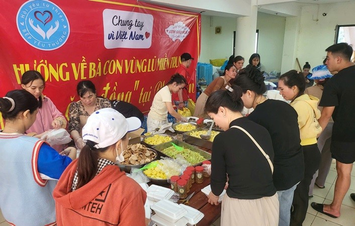 Các bạn trẻ tổ chức bếp ăn dã chiến, cung cấp 3.000 suất cơm cho bà con vùng lũ.