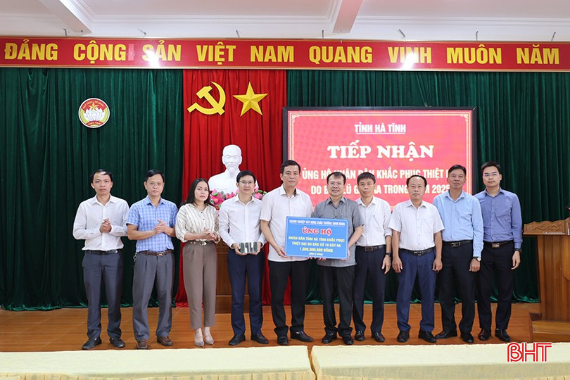 Tại buổi tiếp nhận hỗ trợ, lãnh đạo Doanh nghiệp Xây dựng Xuân Trường (tỉnh Ninh Bình) chia sẻ trước những thiệt hại của người dân Hà Tĩnh do thiên tai gây ra, đặc biệt là ảnh hưởng của cơn bão số 10 vừa qua và trao 1 tỷ đồng, mong muốn góp phần cùng với Đảng bộ, chính quyền và Nhân dân Hà Tĩnh sớm khắc phục hậu quả thiên tai.