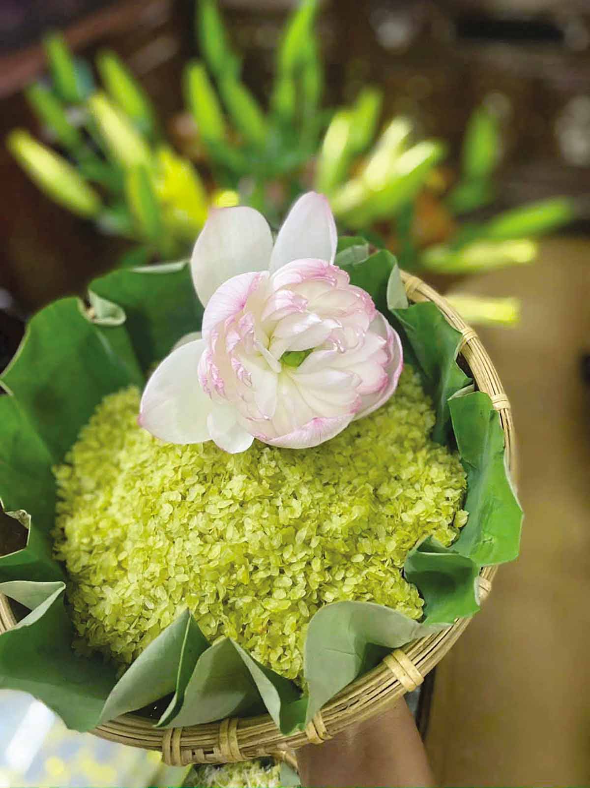 Khi đứng trước gian hàng Cốm Mộc Huyền, mọi thứ đều chỉnh chu với không gian sắp đặt rất Hà Nội để ai cũng muốn dừng chân chụp ảnh. Từ cách bày sản phẩm, màu sắc mây tre, lá sen, hòa cùng cốm non, đến trang phục nhân viên. Cầu toàn với chị Huyền không phải là một khái niệm, mà là thói quen hình thành từ từng lần chuẩn bị gian hàng, từng cách đóng gói, từng lời nói với khách.