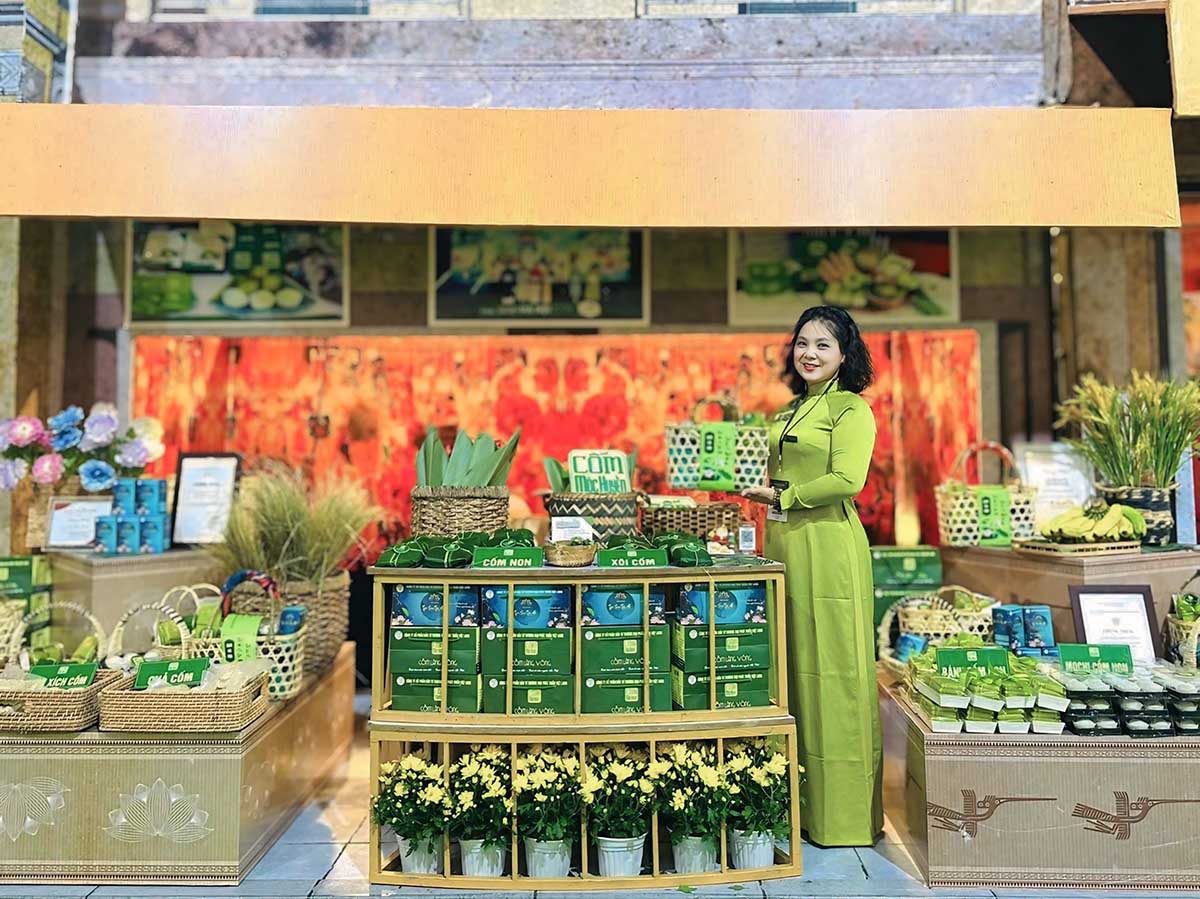 Đứng sau gian hàng ấy là doanh nhân Nguyễn Thị Thu Huyền, Giám đốc Công ty cổ phần Đầu tư Thương mại Phát triển Việt Long, đơn vị phát triển thương hiệu Cốm Mộc Huyền. Người phụ nữ ấy có nụ cười hiền và ánh mắt luôn ánh lên niềm tự hào khi nói về cốm. Giọng chị trầm hơn khi nói về mình: “Tôi yêu cốm và làm cốm bằng tâm thế của một người Hà Nội không cho phép mình làm qua loa”.