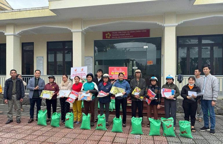 Đại diện các cấp Hội Doanh nhân trẻ Việt Nam đến vùng lũ trao nguồn lực hỗ trợ bà con.