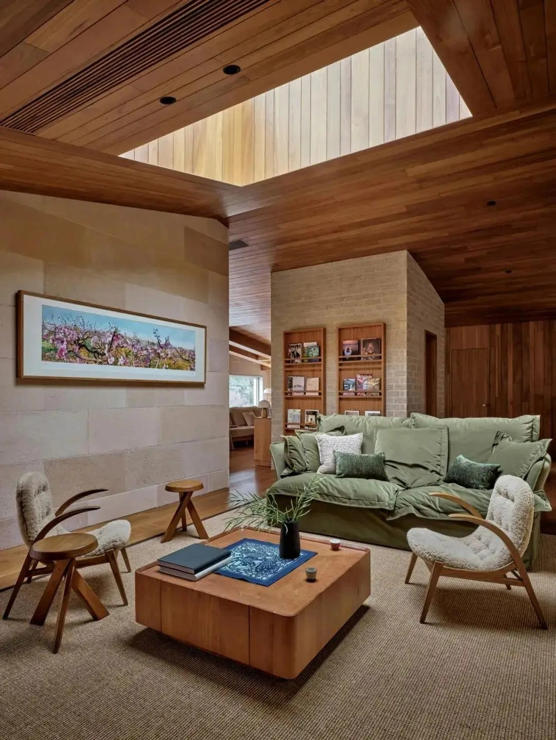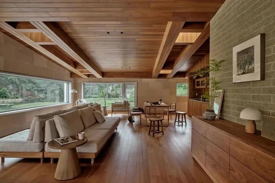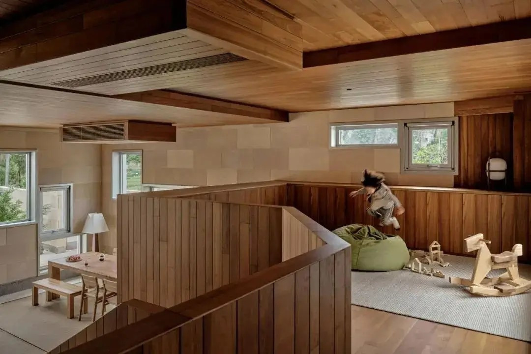 Nội thất trong nhà chủ yếu bằng gỗ, với thiết kế nhằm đáp ứng thói quen sinh hoạt khác nhau của các thành viên. Ảnh: Sohu