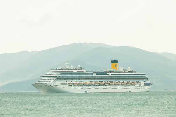 Tàu du lịch biển quốc tế Costa Serena neo đậu trên vịnh biển Nha Trang.