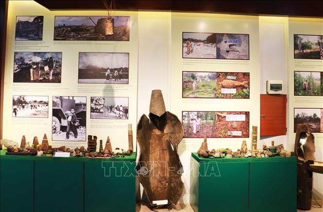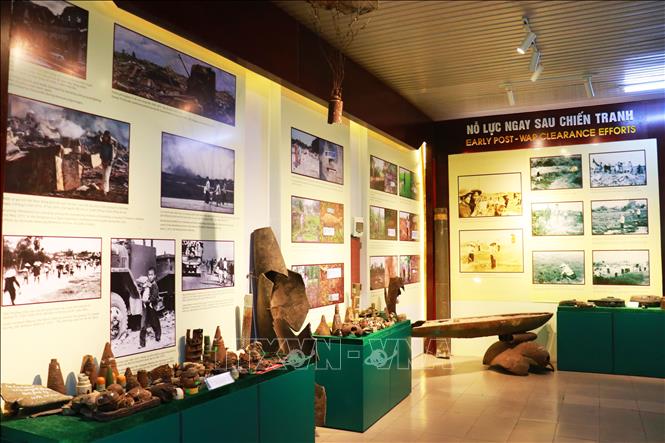 Trung tâm trưng bày khoảng 1.000 hiện vật, hình ảnh liên quan đến bom mìn, vật nổ cũng như những nổ lức khắc phục hậu quả bom mìn.