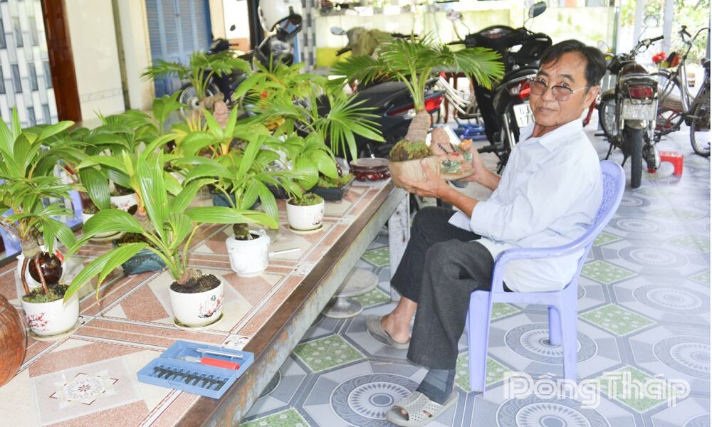 Ở ấp Trung A, xã Long Định, tỉnh Đồng Tháp chú Huỳnh Quang Nhơn là một trong những người gắn bó sớm với mô hình dừa kiểng bonsai.