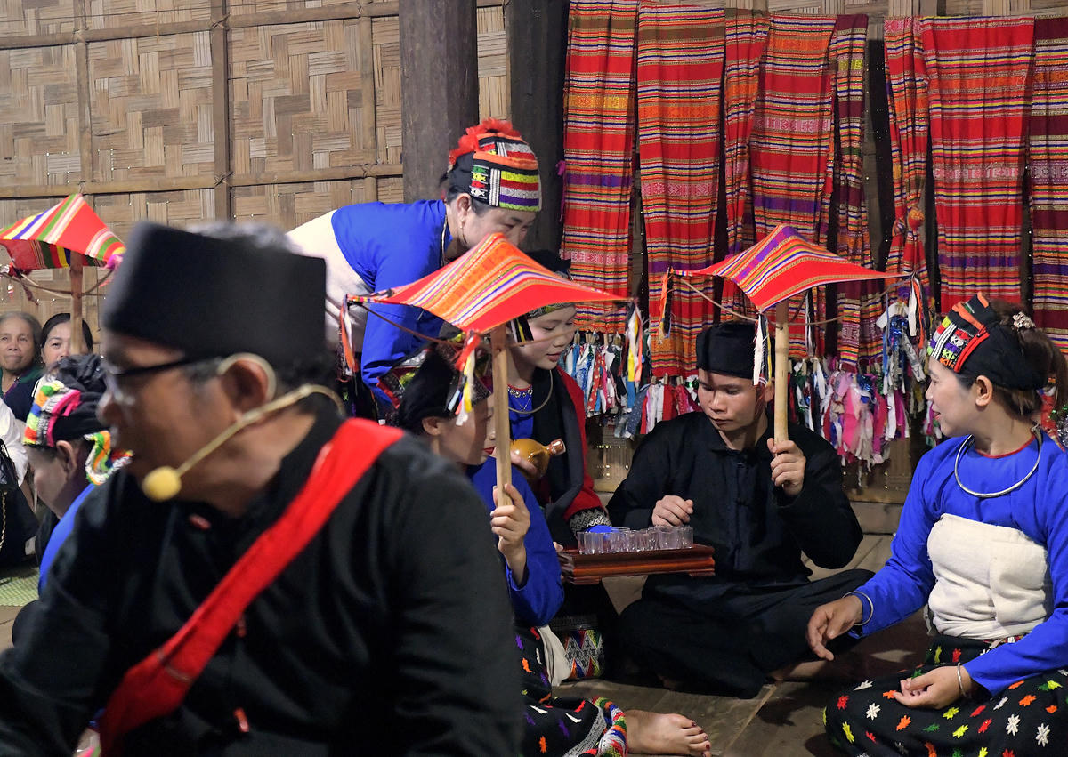 Các chàng trai bản đến tìm hiểu cô gái. Trai gái giao duyên hò hẹn qua điệu khặp, tiếng khèn.
