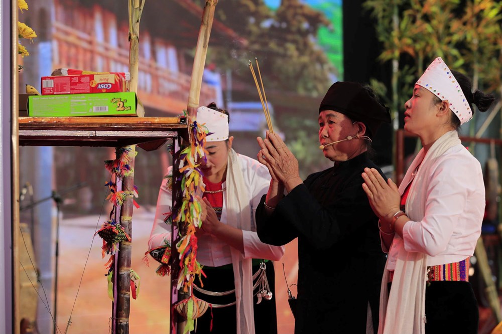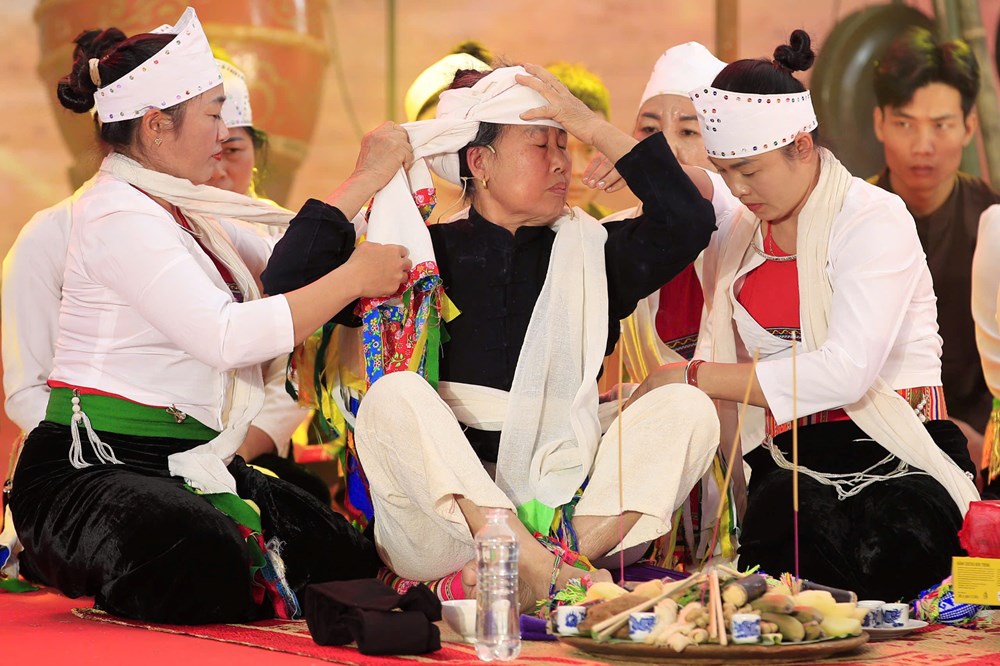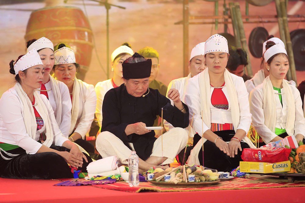 Tiếng khấn của bà Mo vang lên chậm rãi như lời trò chuyện cùng tổ tiên, thần linh đã dõi theo bản mường từ bao đời.