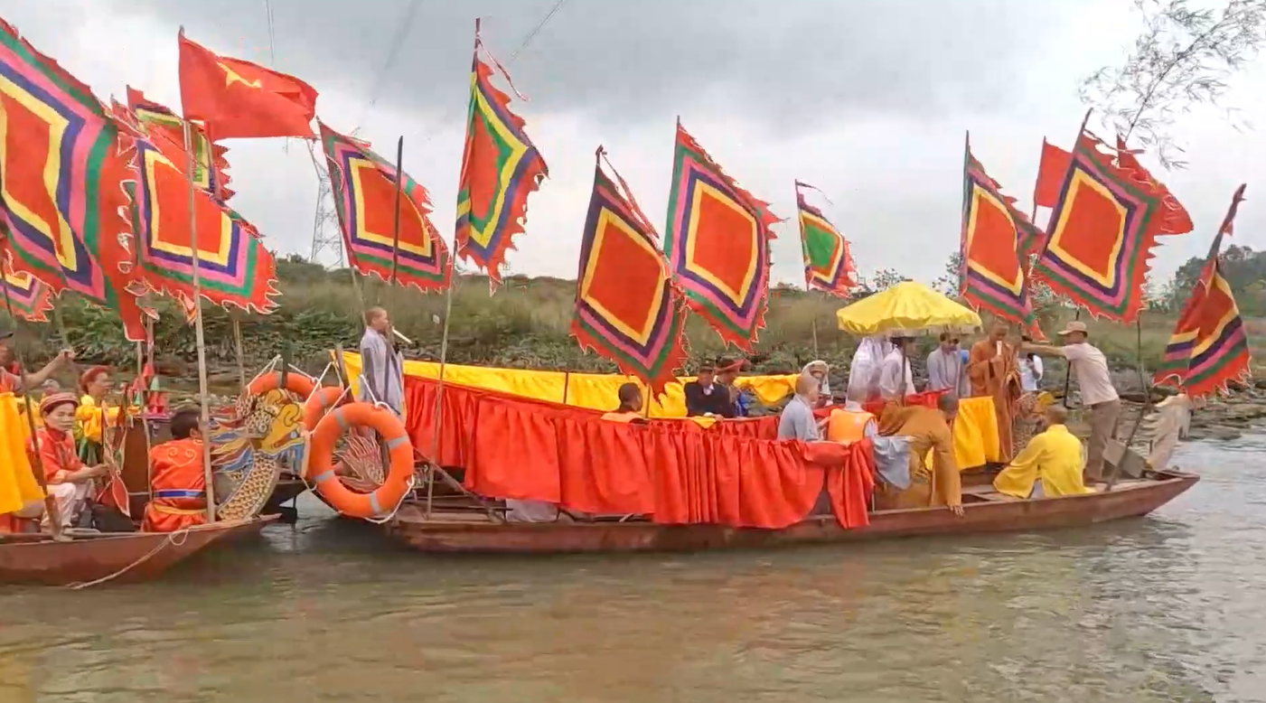 Hát văn, hát đối phục vụ cho Lễ hội Rước nước chùa Báo Ân trên dòng sông Mã.
