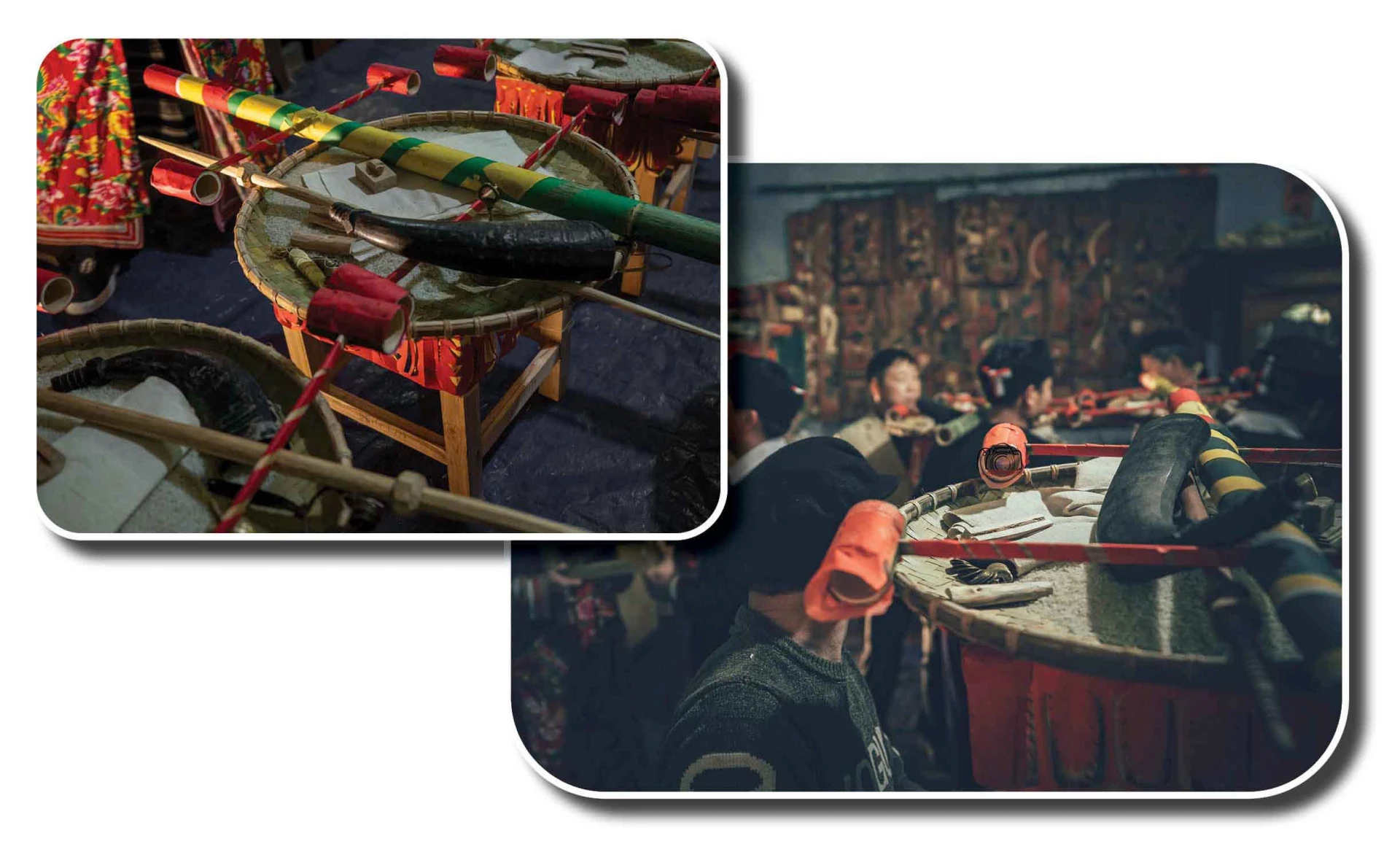 Nếu phần lễ tế là sự tĩnh tại, uy nghiêm thì màn thực hành nghi thức lại là phần hồn cốt sôi động và hào sảng nhất của buổi lễ. Trong không gian đặc quánh mùi hương trầm, tiếng chuông nhạc (Mà lình), tiếng chiêng, tiếng trống dồn dập hòa vào nhau tạo nên một âm hưởng thôi thúc, giục giã.