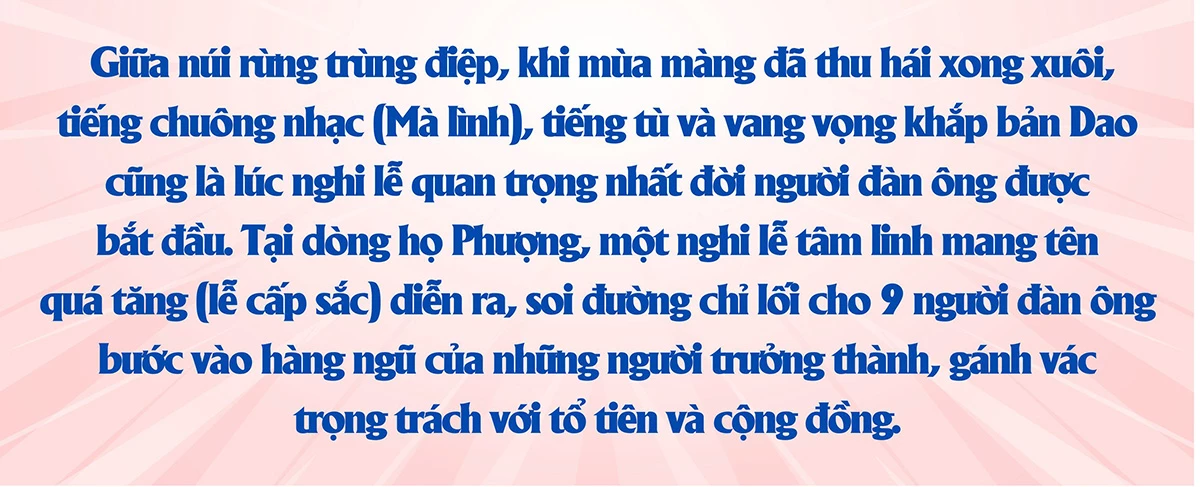 Khi những ruộng bậc thang đã gặt hái xong, cái lạnh se sắt của tháng Chạp, tháng Giêng ùa về, đó là lúc người Dao bước vào mùa "nông nhàn" – nhưng lại là mùa bận rộn nhất của đời sống tâm linh. Tại ngôi nhà chung của dòng họ Phượng, không khí chuẩn bị cho Lễ cấp sắc (Quá Tăng) náo nhiệt nhưng đầy trang nghiêm.