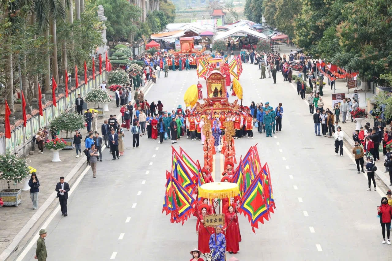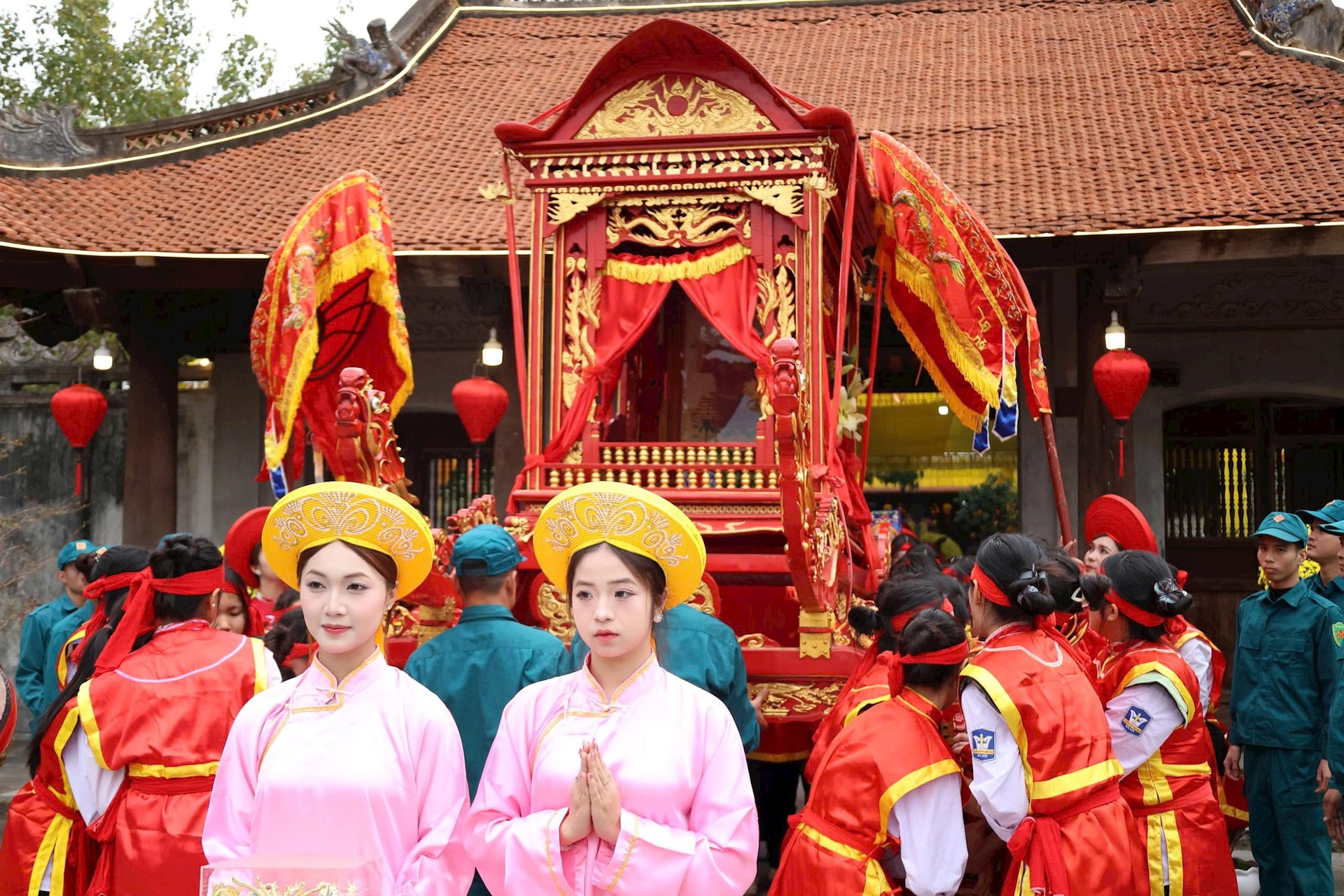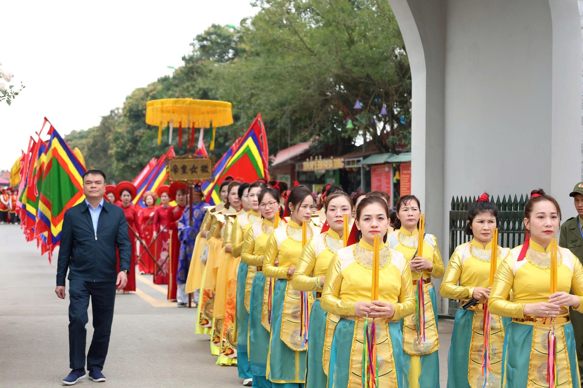 Đoàn rước tại Khu di tích quốc gia đặc biệt đền Hai Bà Trưng. Ảnh: Nguyễn Tin