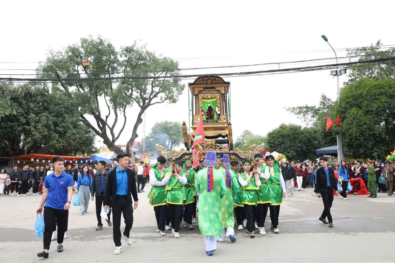 Đoàn rước kiệu di chuyển về đình Hạ Lôi. Ảnh: Nguyễn Tin