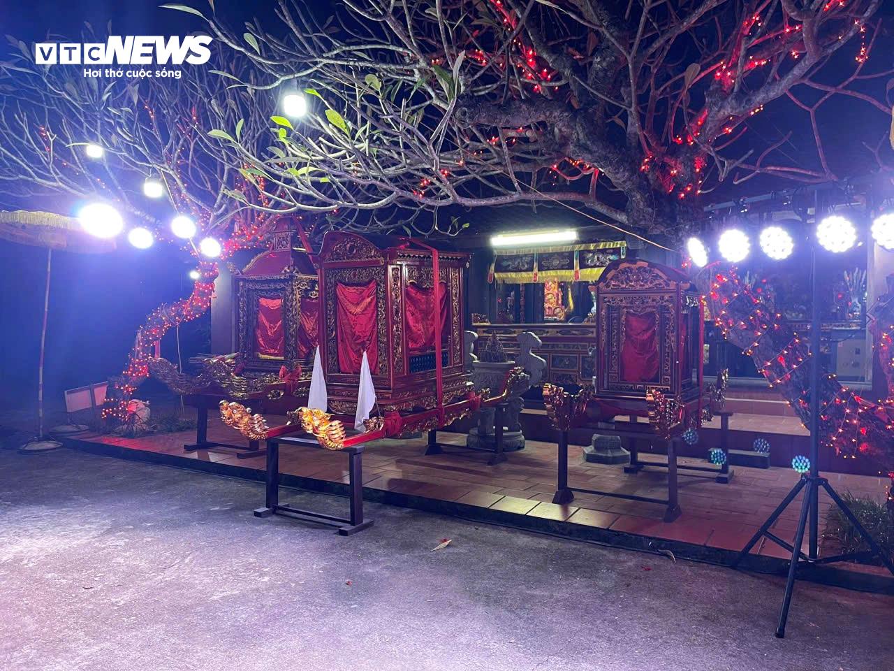 Tuy nhiên, năm nay phải đến 14h đoàn rước mới hạ kiệu, các trai tráng khênh kiệu tạ lễ trước khi về nhà tắm rửa.