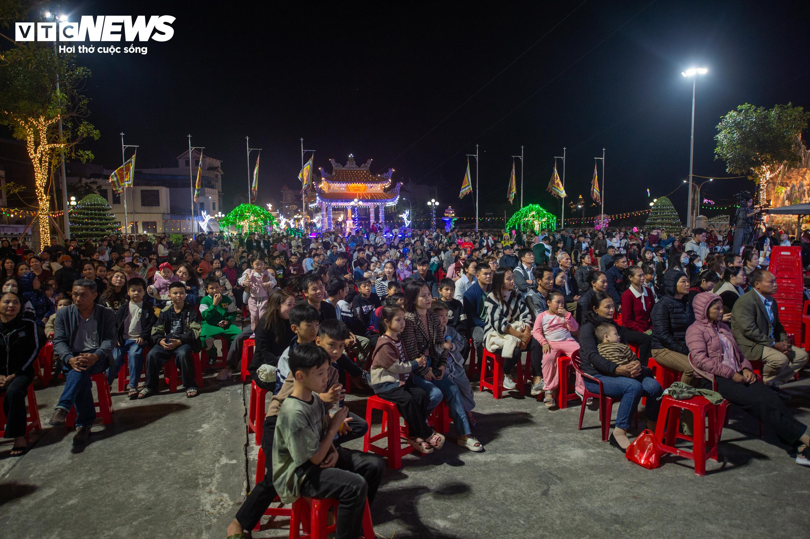 Trên sân khấu ngoài trời, chương trình hoan ca và diễn nguyện Giáng sinh diễn ra sôi nổi với sự tham gia của các hội đoàn, ca đoàn và đại diện các giáo họ. Các tiết mục được dàn dựng công phu, tái hiện hành trình Chúa giáng trần, mang đến không gian thiêng liêng, lắng đọng cho người xem.