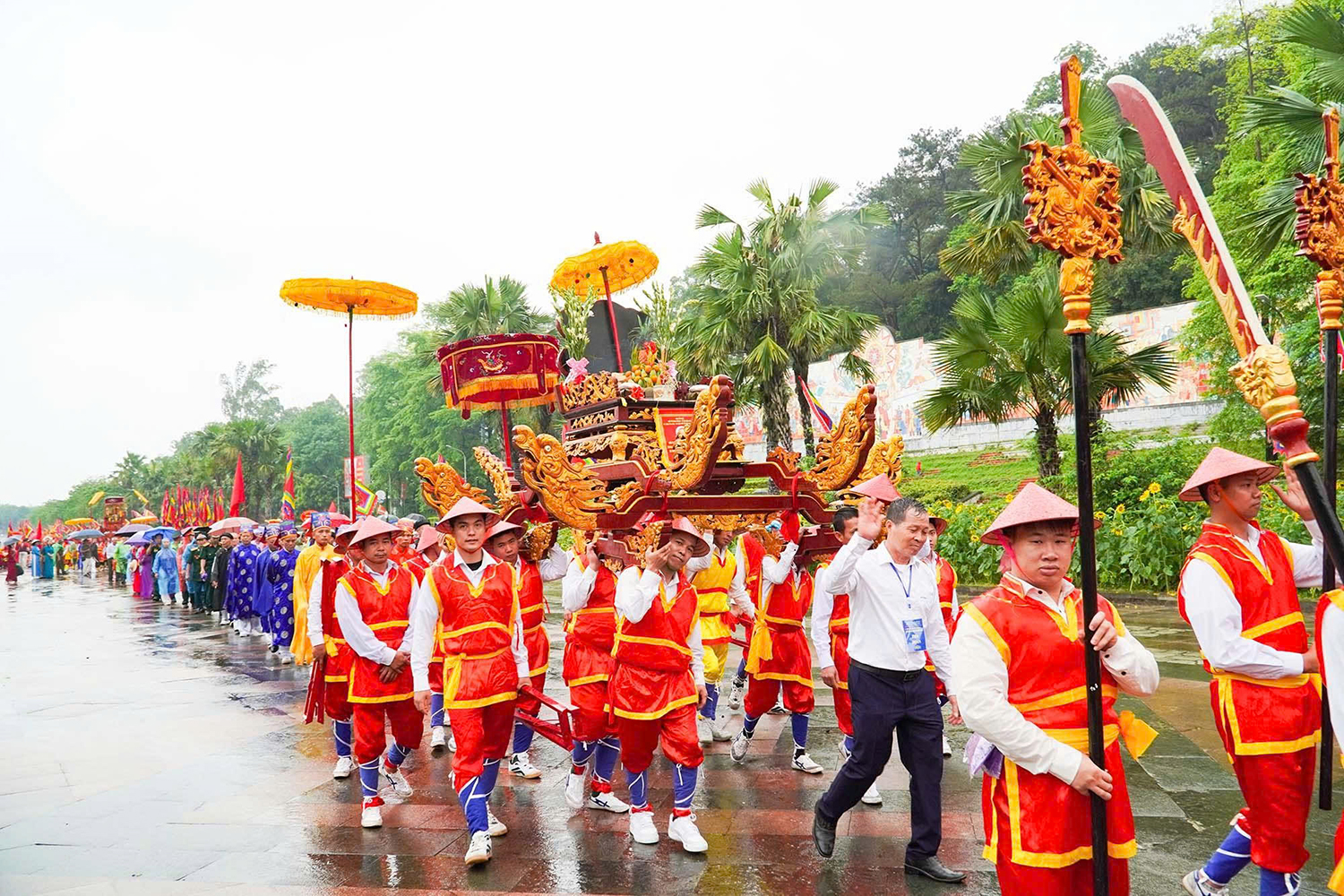 Rước kiệu về Đền Hùng là nghi thức truyền thống nhằm tri ân công đức các Vua Hùng. Ảnh: THÙY LINH