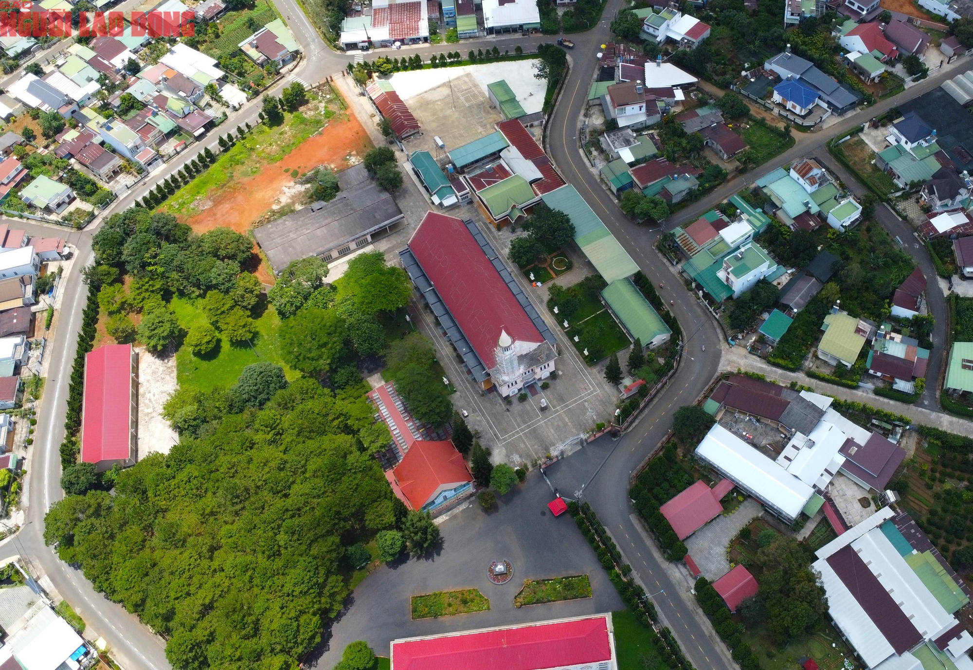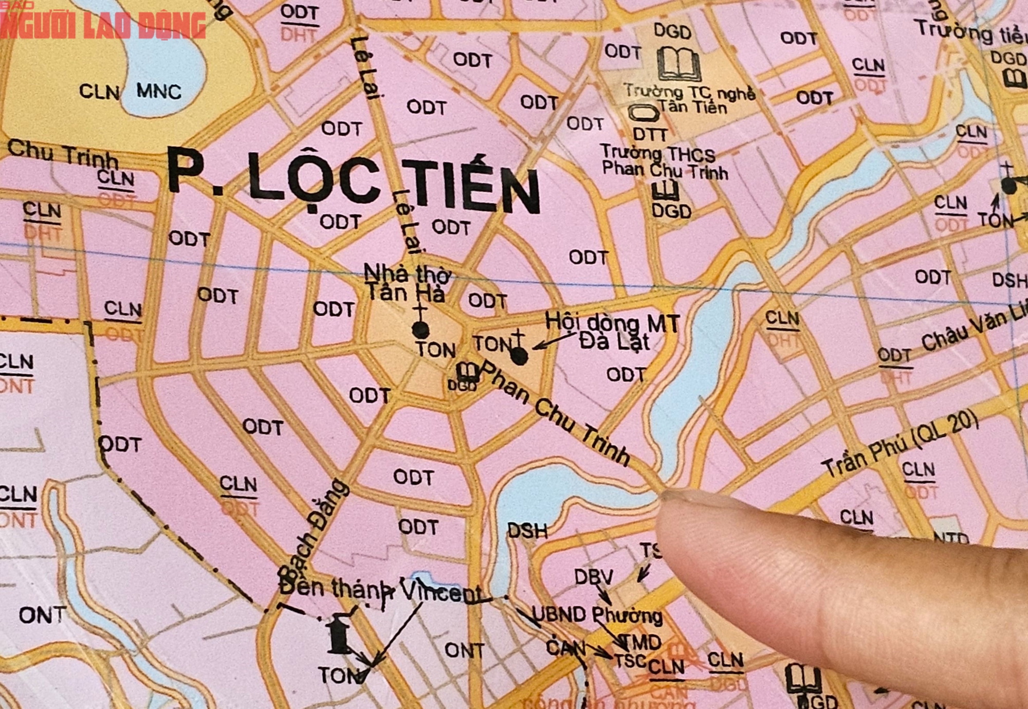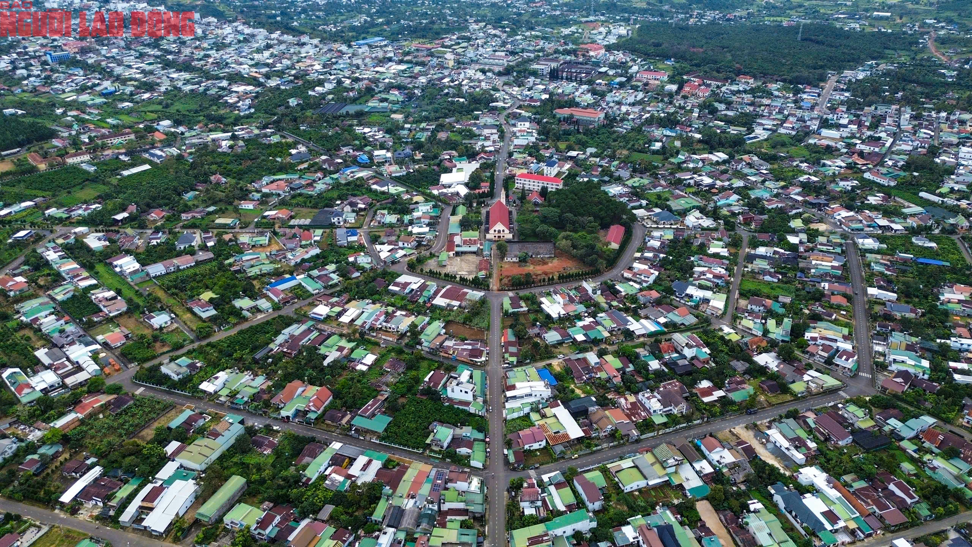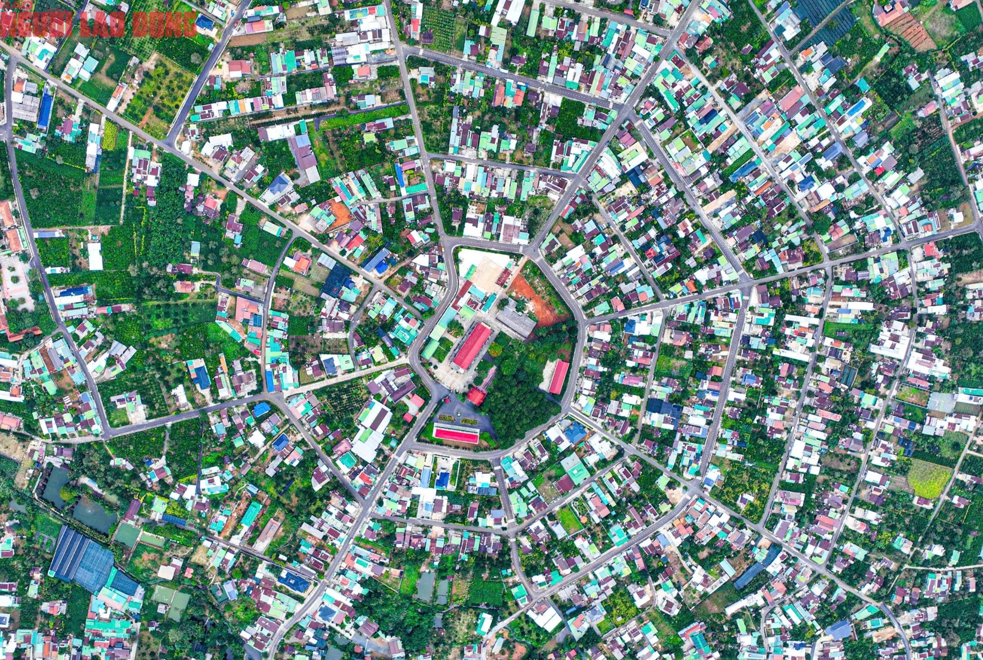Tuyến đường chính từ Quốc lộ 20 (đường Trần Phú) vào trung tâm ngôi làng bát quái là đường Phan Chu Trinh, chia nửa trung tâm này thành 2 phần không đều nhau khi nhà thờ nằm vị trí chính diện. Do vậy, vòng tròn thứ nhất tính từ khu vực trung tâm không được chia đều như hình đồ âm dương trong bát quái.