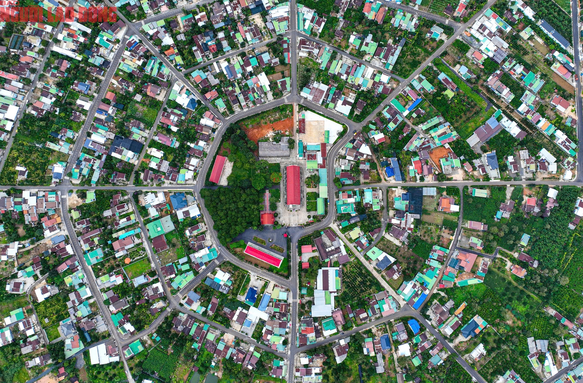 Từ trung tâm là nhà thờ, tỏa ra 8 trục giao thông ra xung quanh với khoảng cách đều nhau, nối 8 trục này là các đường nang cũng với khoảng cách đều nhau, tạo nên một hình bát quái độc đáo.
