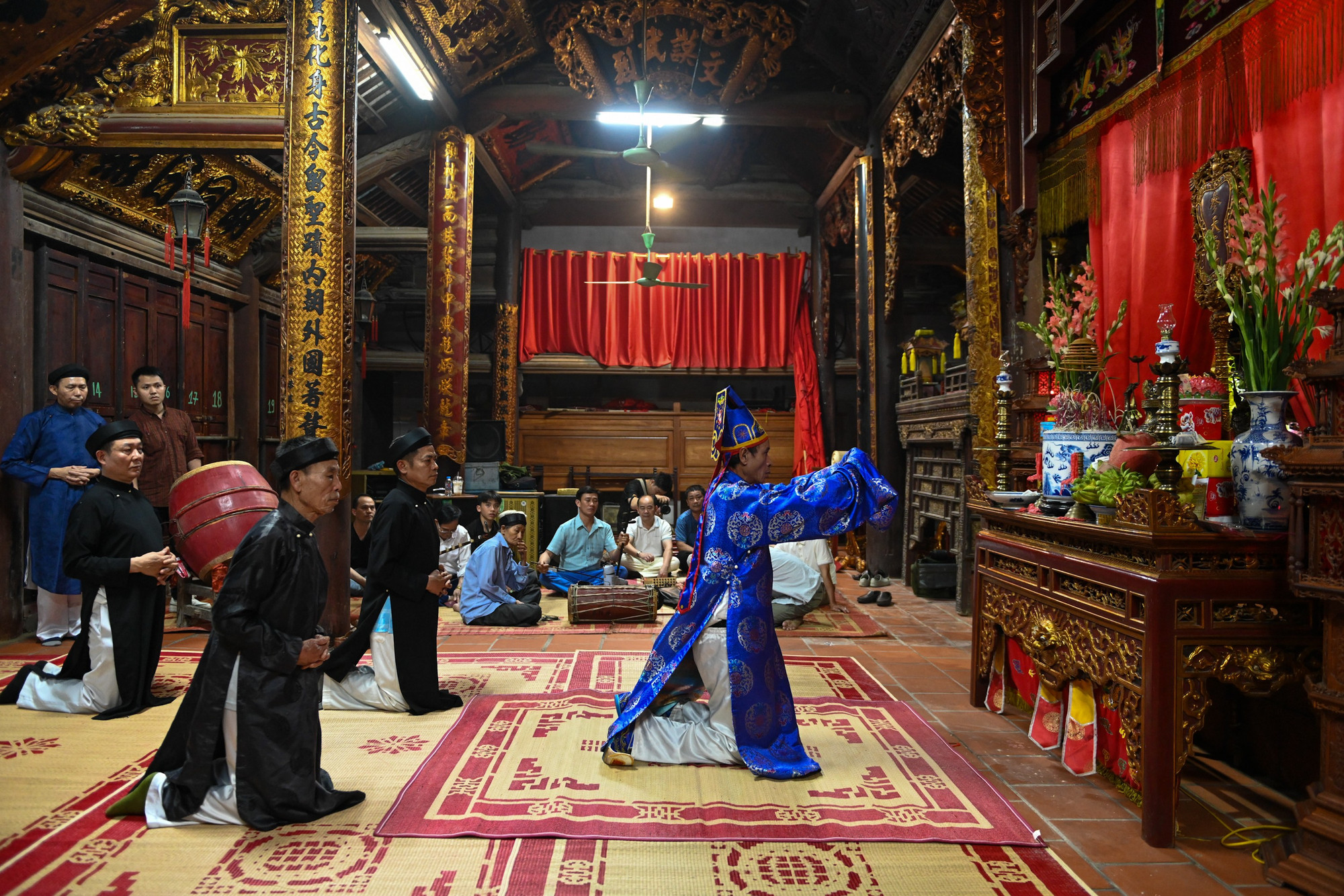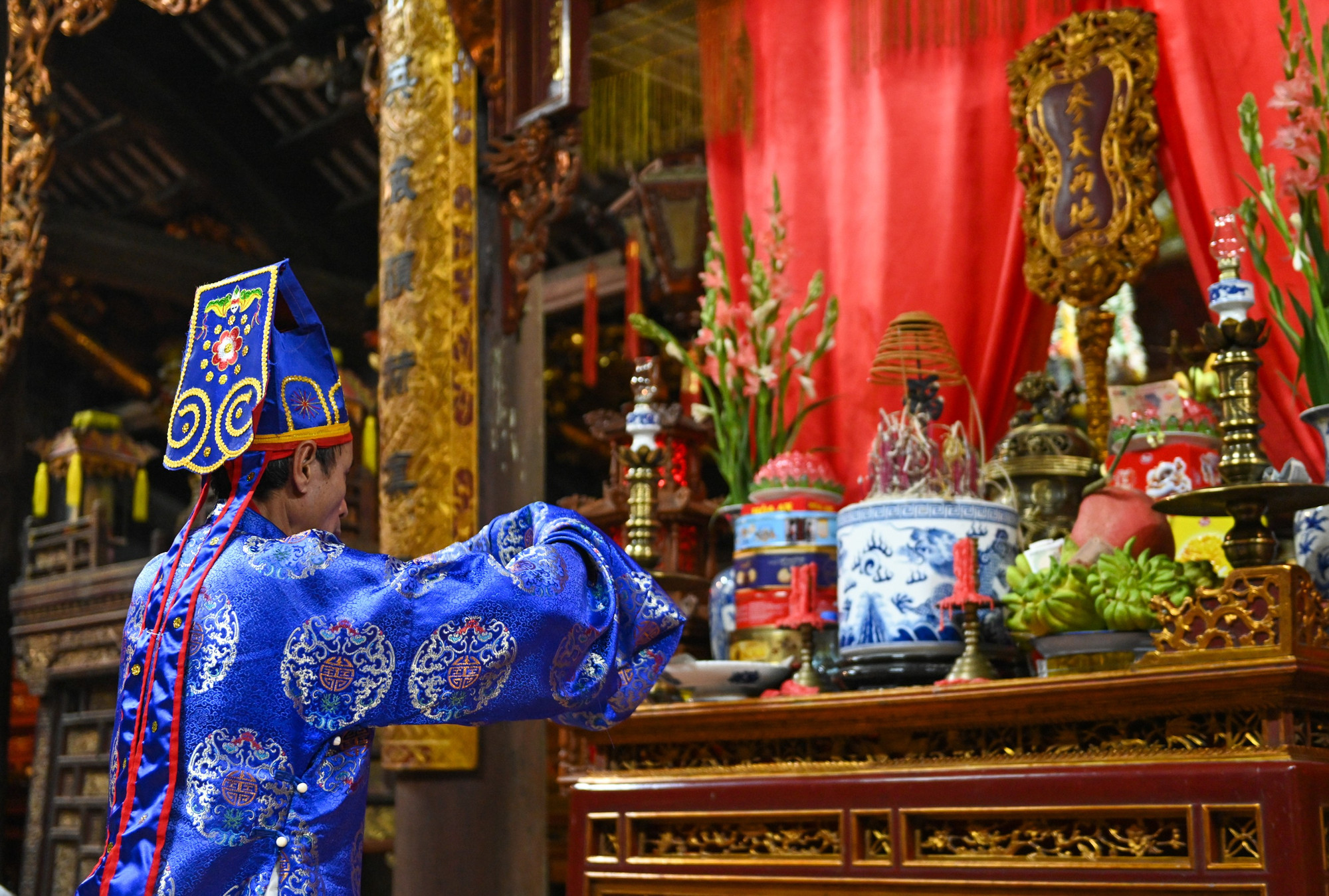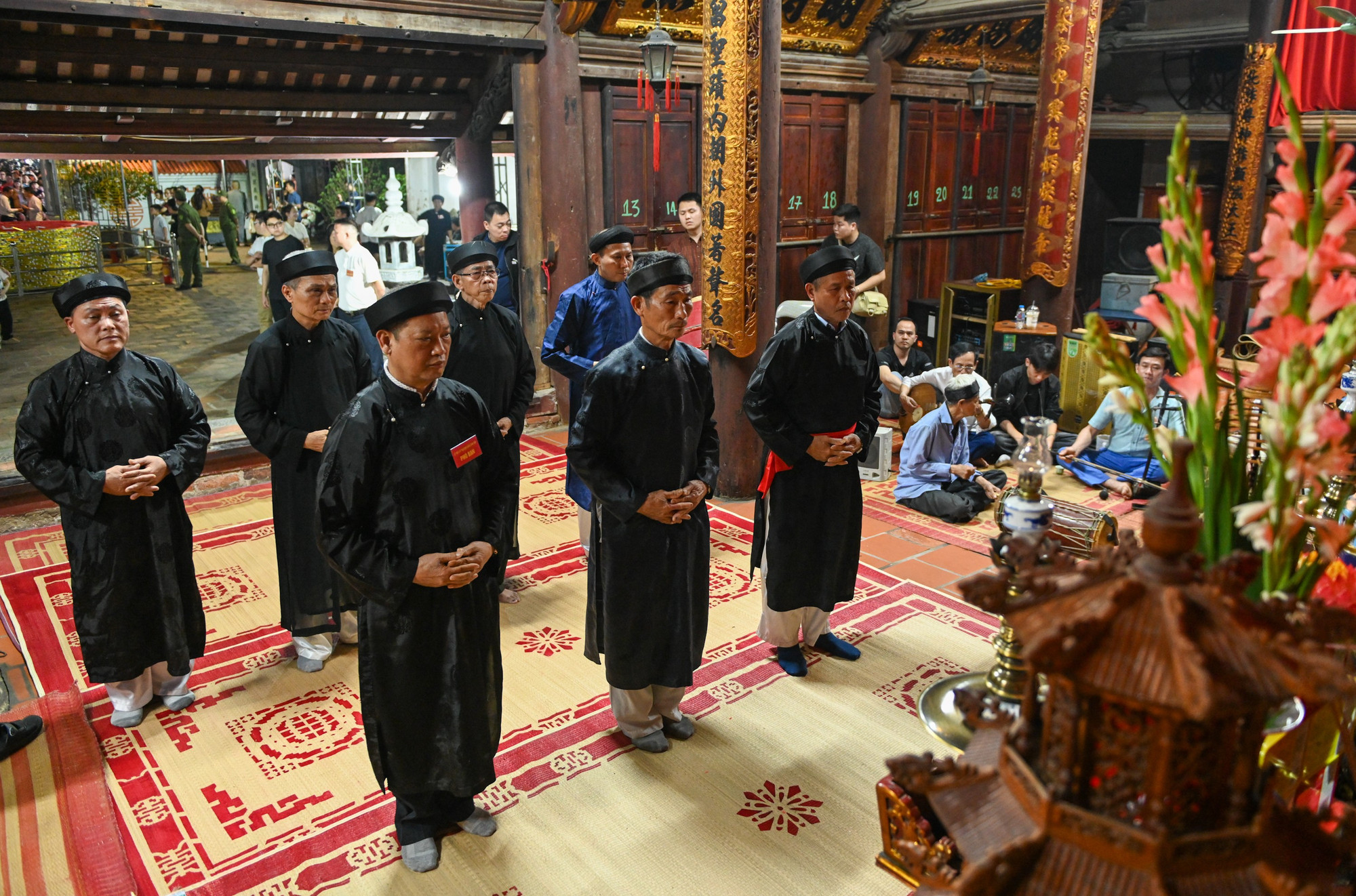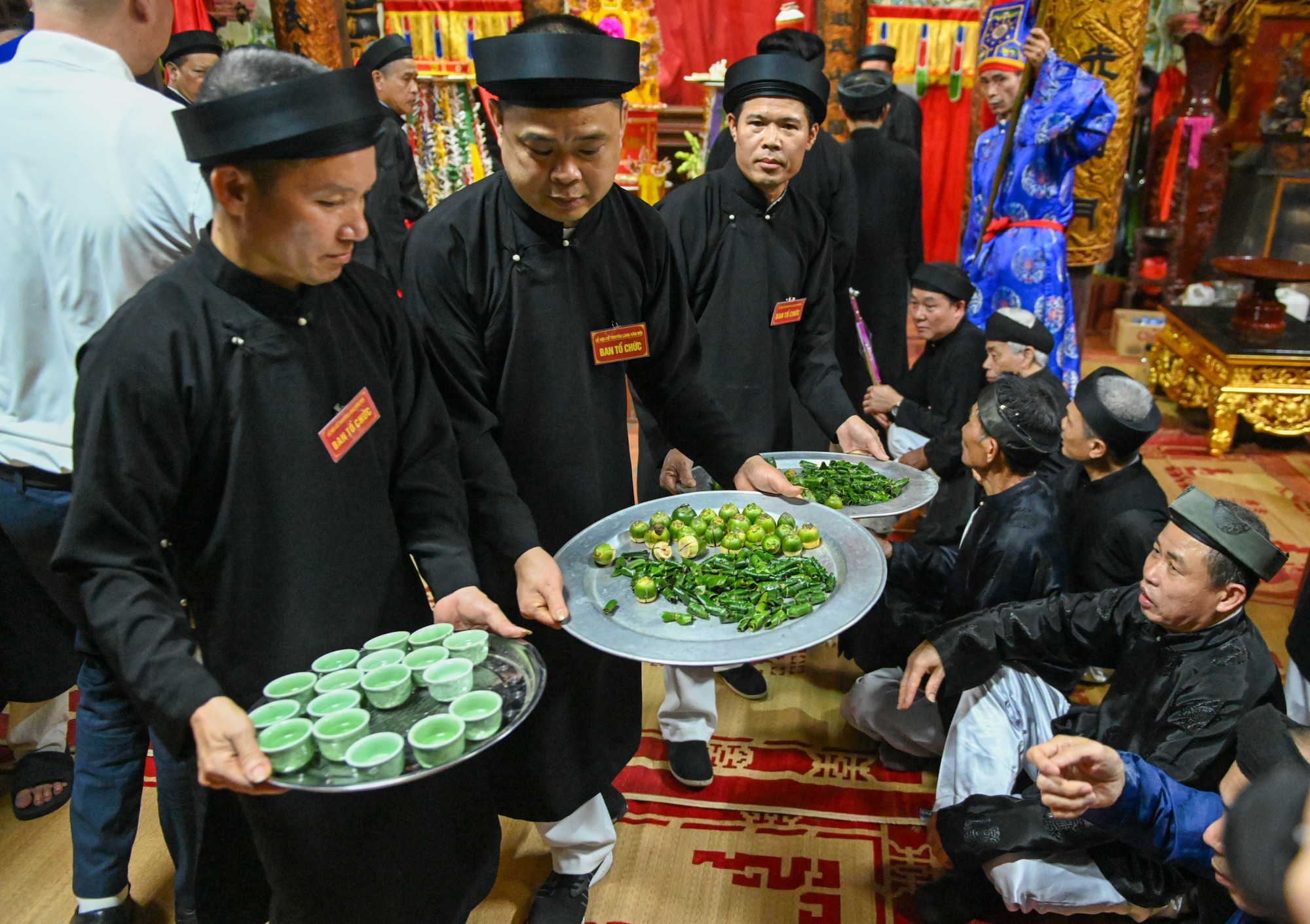 Sau buổi lễ, mâm trầu cau, các ly rượu khao quân được mang ra để dân làng và du khách thập phương cùng hưởng phúc lộc.
