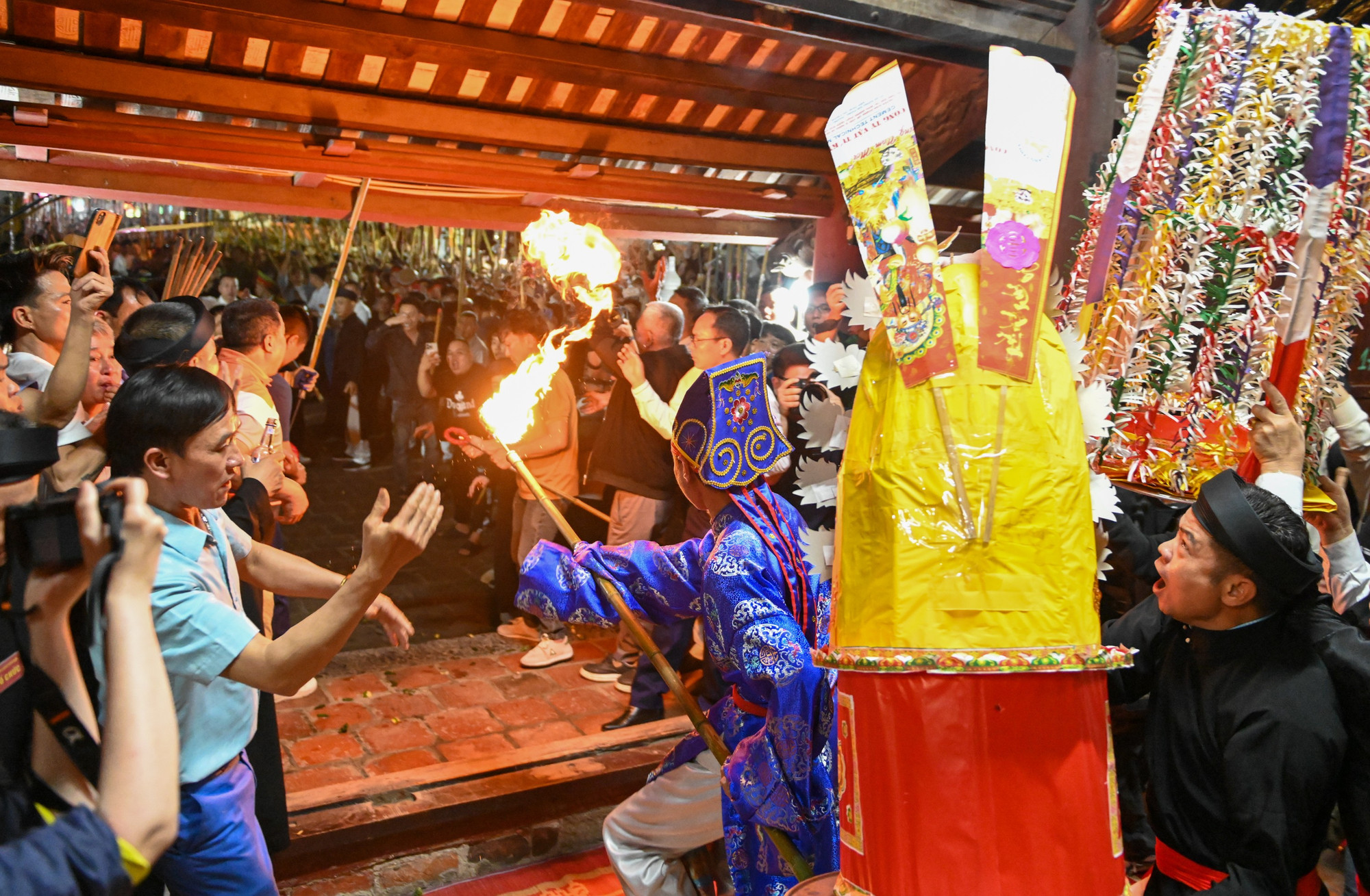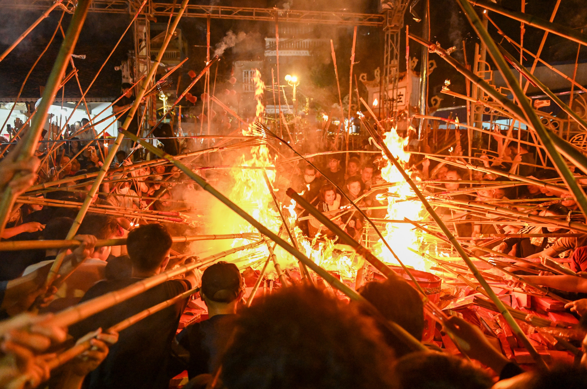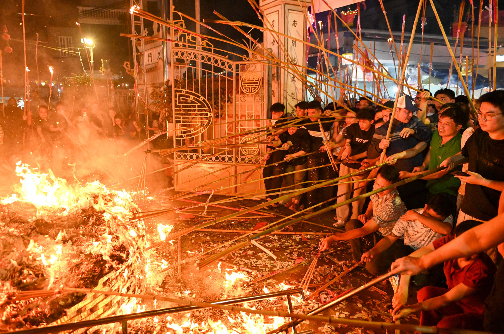 Dân làng và du khách thập phương tìm mọi cách để đem ngọn lửa thiêng về.