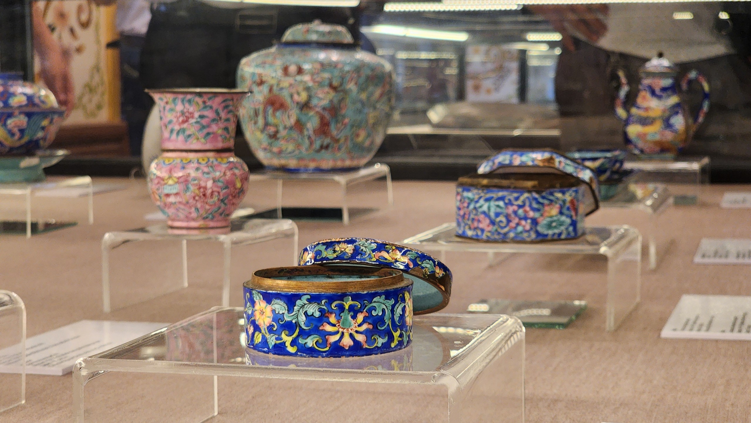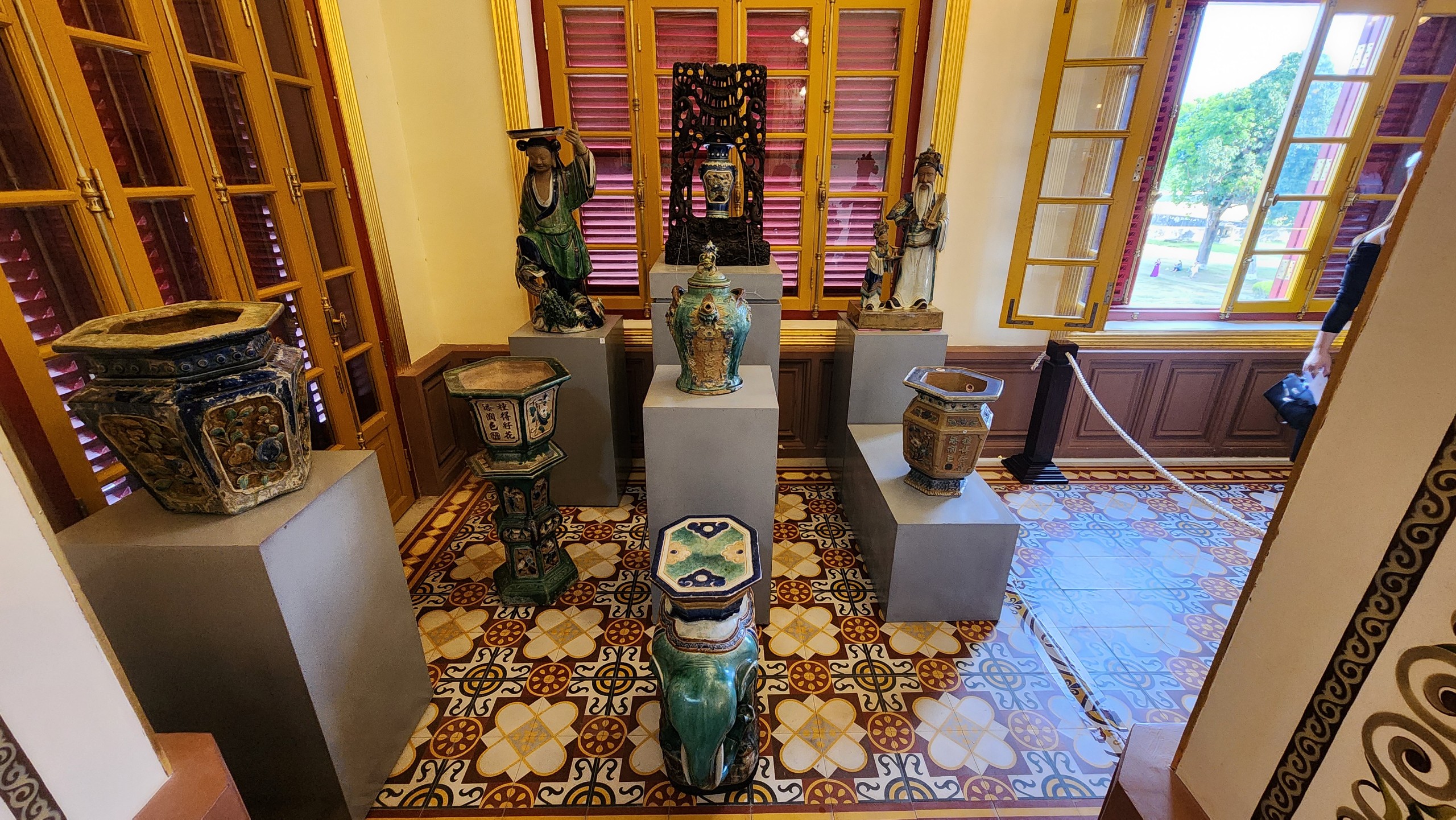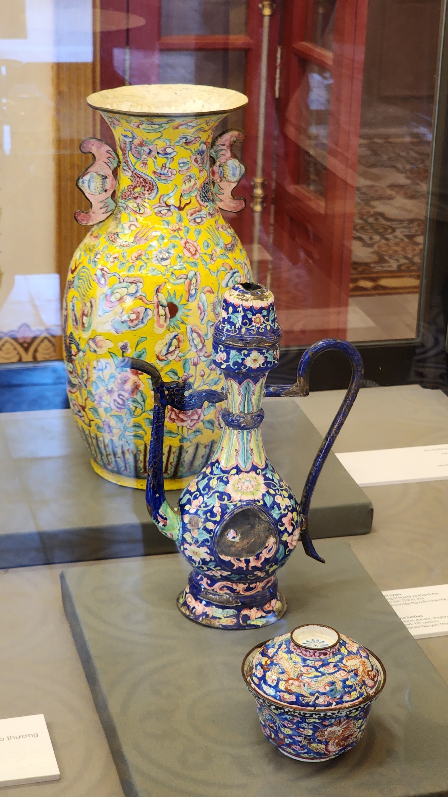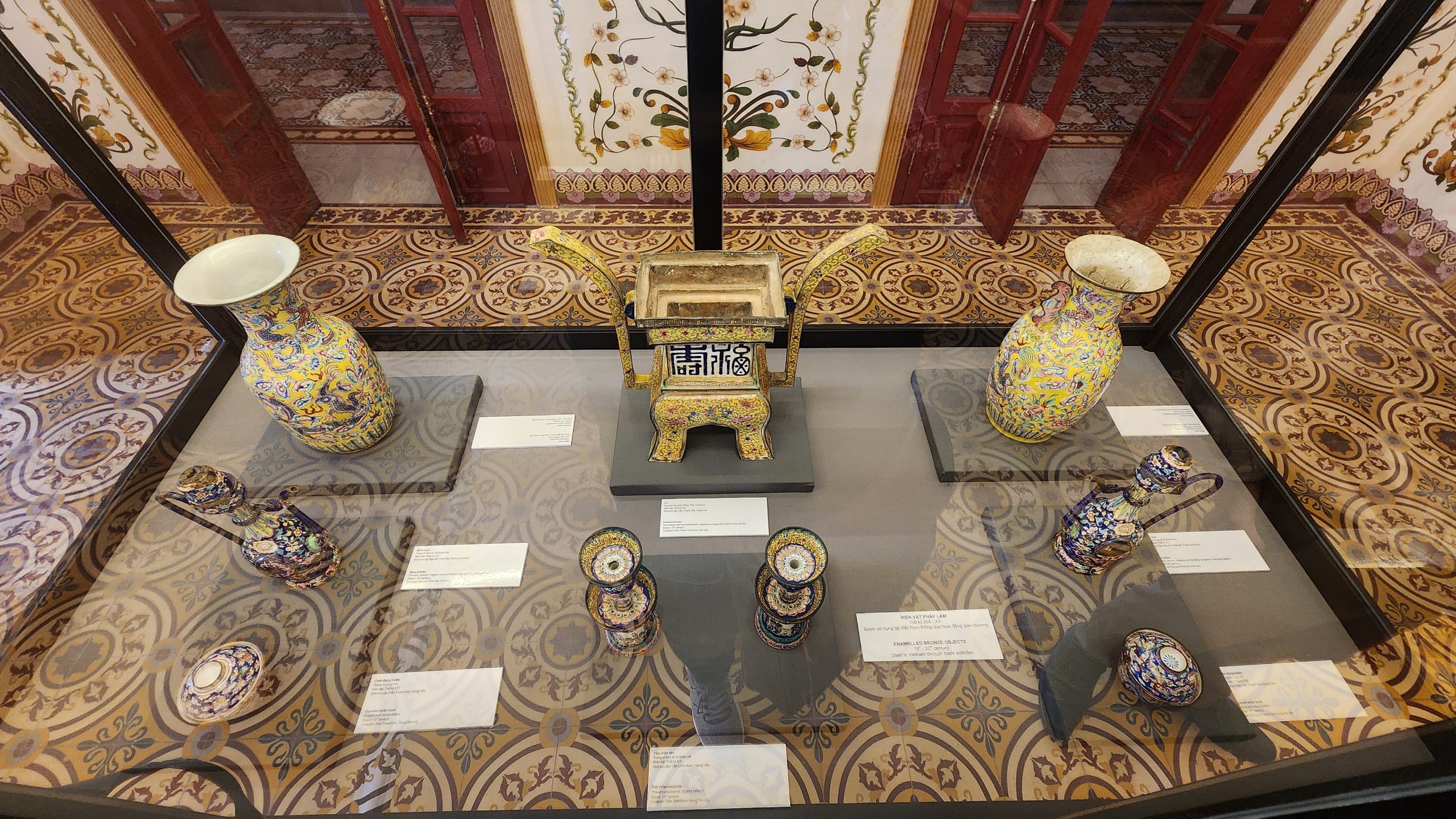 Diễn ra từ ngày 22-6 đến ngày 21-7, triển lãm “Cổ vật hội tụ” giới thiệu 147 cổ vật, hiện vật thuộc thời Nguyễn, được lựa chọn theo các bộ sưu tập thuộc các nhóm chất liệu như đồ pháp lam, đồ gốm sứ, đồ kim loại quý, đồ gỗ.