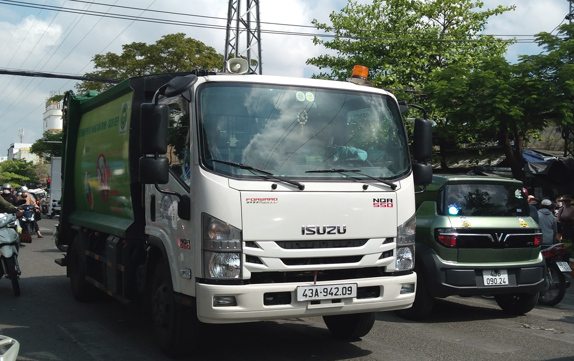 Những xe vận chuyển rác với chiếc loa trên nóc cabin mang những giai điệu, bản nhạc xuân đi khắp các đường ở trung tâm thành phố những ngày giáp Tết. Ảnh: HOÀNG HIỆP
