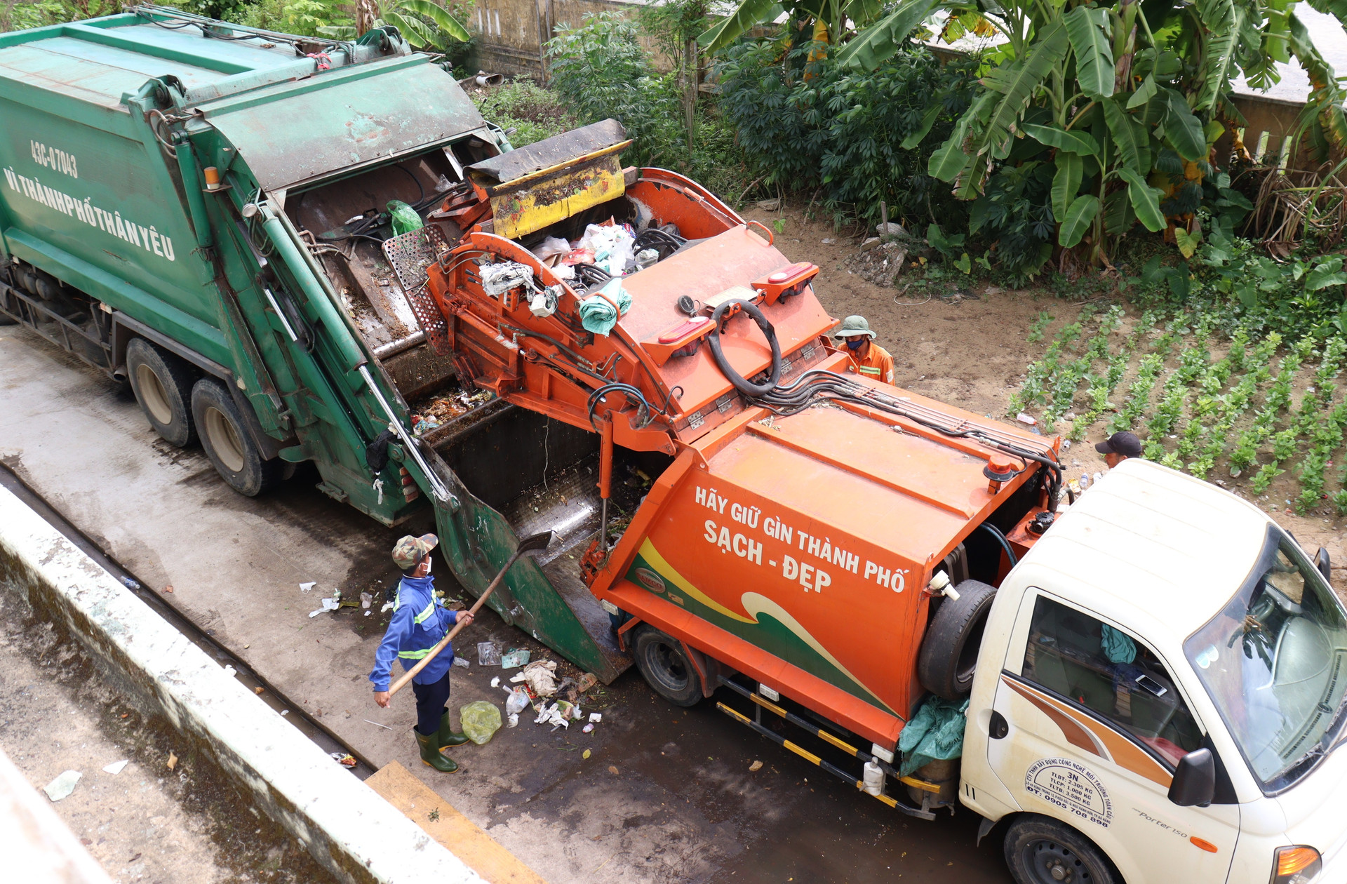 Các phương tiện thu gom, vận chuyển rác được tăng cường huy động để đảm bảo vệ sinh môi trường phục vụ Tết Nguyên đán. Ảnh: HOÀNG HIỆP