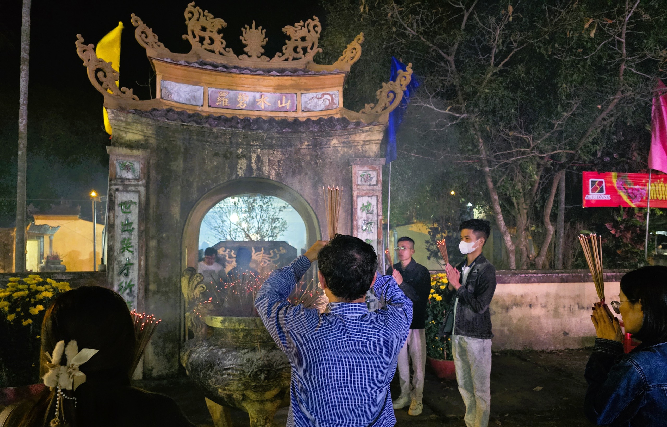 Không gian văn hóa tâm linh linh thiêng chợ đình Bích La tấp nập người thắp hương cầu lộc, cầu tài, xin “ông đồ” chữ… đầu xuân mới.