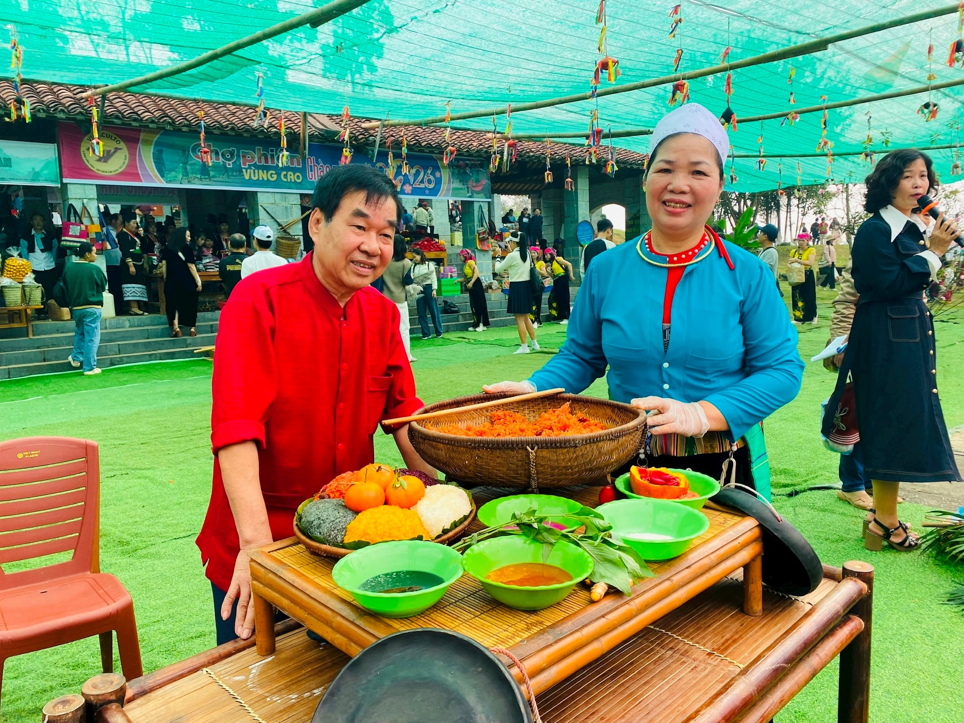 Nhiều nghệ nhân, tiểu thương trực tiếp giới thiệu tri thức dân gian trong chế biến ẩm thực như xôi màu, bánh cuốn vùng cao mang đến cho du khách những trải nghiệm gần gũi, chân thực. Bên cạnh đó, không gian trưng bày tranh “Sắc màu phiên chợ” và hoạt động trình diễn các nghề thủ công truyền thống như dệt vải, thêu thổ cẩm, đan lát đã góp phần tôn vinh giá trị lao động sáng tạo của đồng bào các dân tộc.