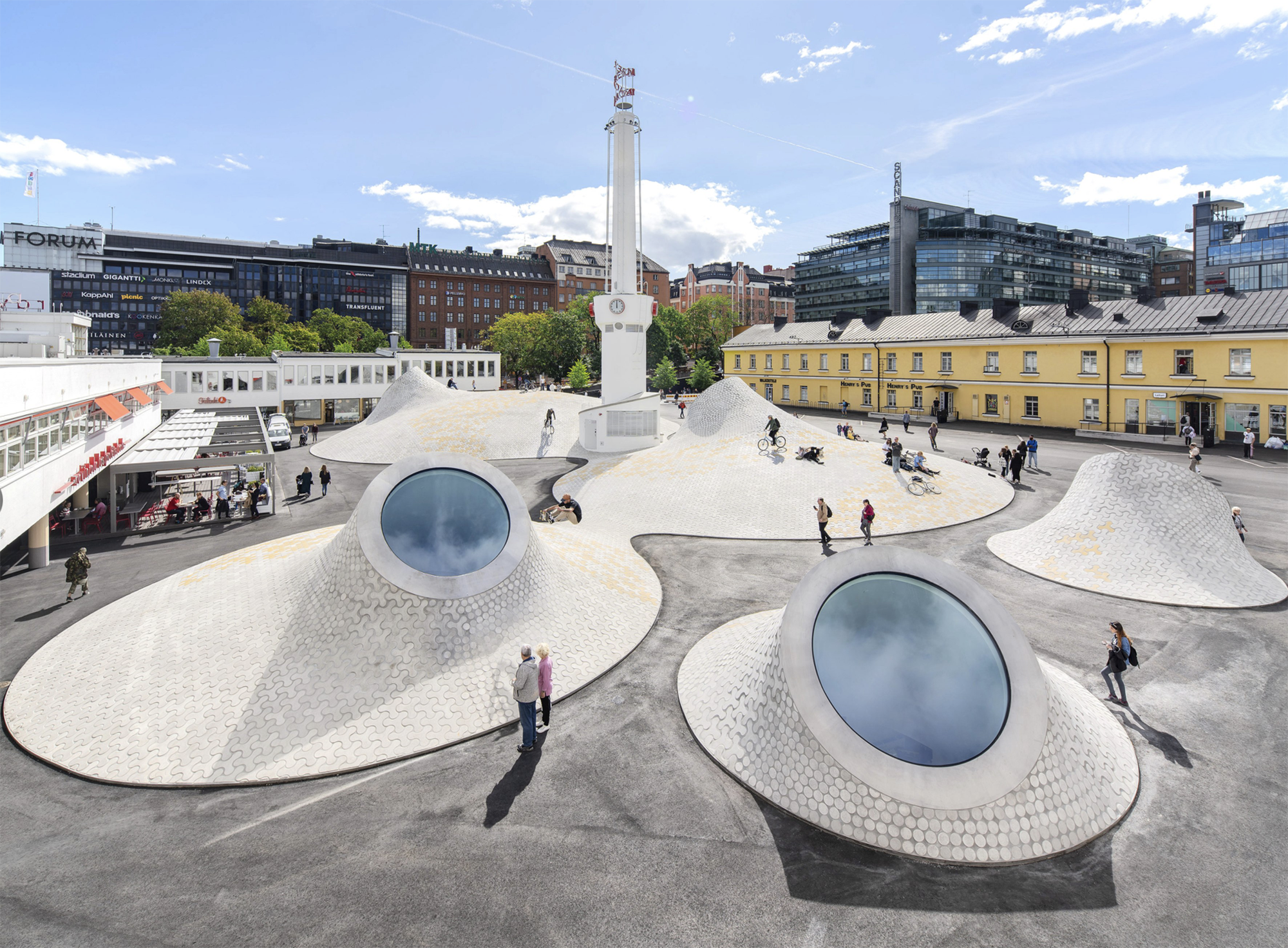 Một ví dụ tiêu biểu là bảo tàng Amos Rex nằm dưới quảng trường Lasipalatsi. Không gian triển lãm do công ty JKMM Architects thiết kế, với năm mái vòm bê tông có cửa sổ tròn, nhô lên trên quảng trường, còn toàn bộ phần trưng bày nằm dưới mặt đất.