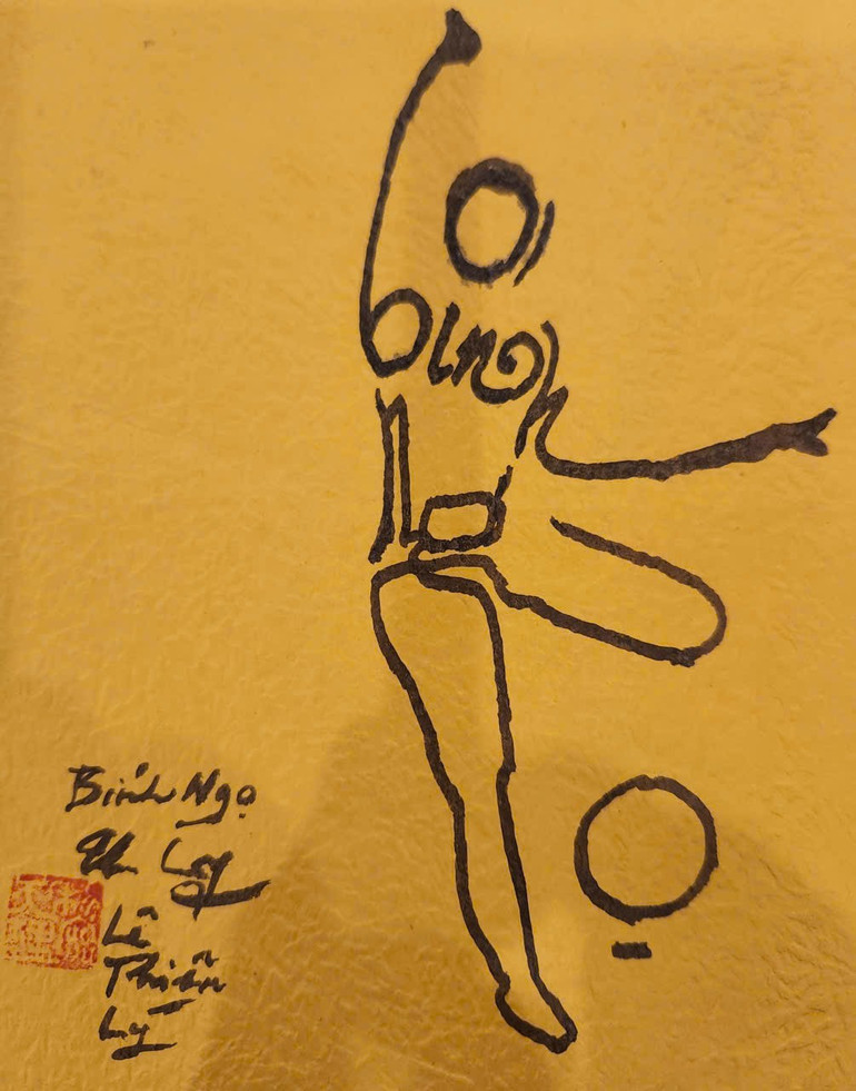 Trí tưởng tượng, sức sáng tạo còn in dấu qua những bức thư pháp viết chữ Bính Ngọ được biến hóa, cách điệu tài tình qua các chữ cái, truyền tải nhiều thông điệp. Hình ảnh những con người, đồ vật gần gũi thân quen trong đời sống hiện lên chân thực. Chữ Bính Ngọ lúc là hình thiếu nữ, chàng trai, cầu thủ bóng đá, bóng chuyền, khi là hình con thuyền, xe máy, máy bay, con chim, bình rượu, lọ hoa...tràn đầy năng lượng, không khí tươi vui, hạnh phúc, vạn sự như ý…